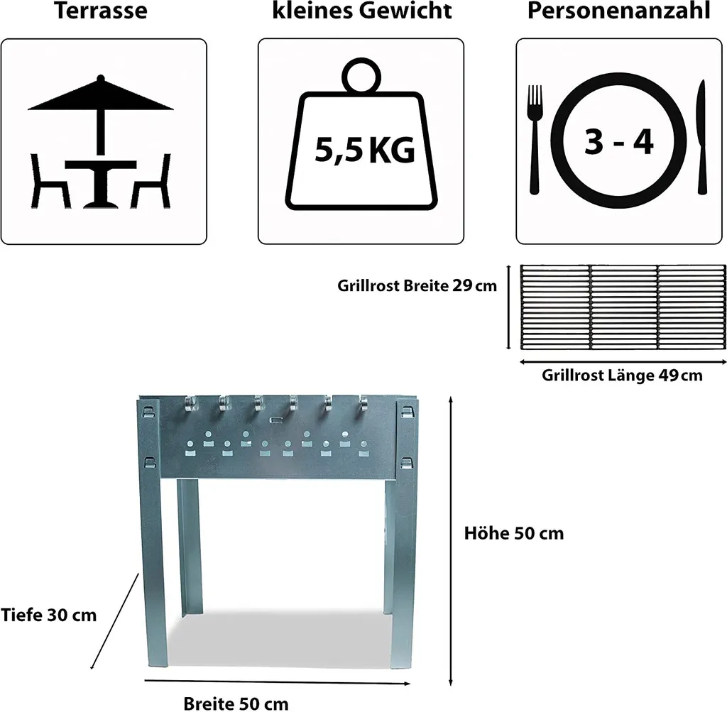 ACTIVA Mangal Schaschlik Grill Edelstahl 50×30 Cm Inkl. Grillrost Und 6 Spießen
