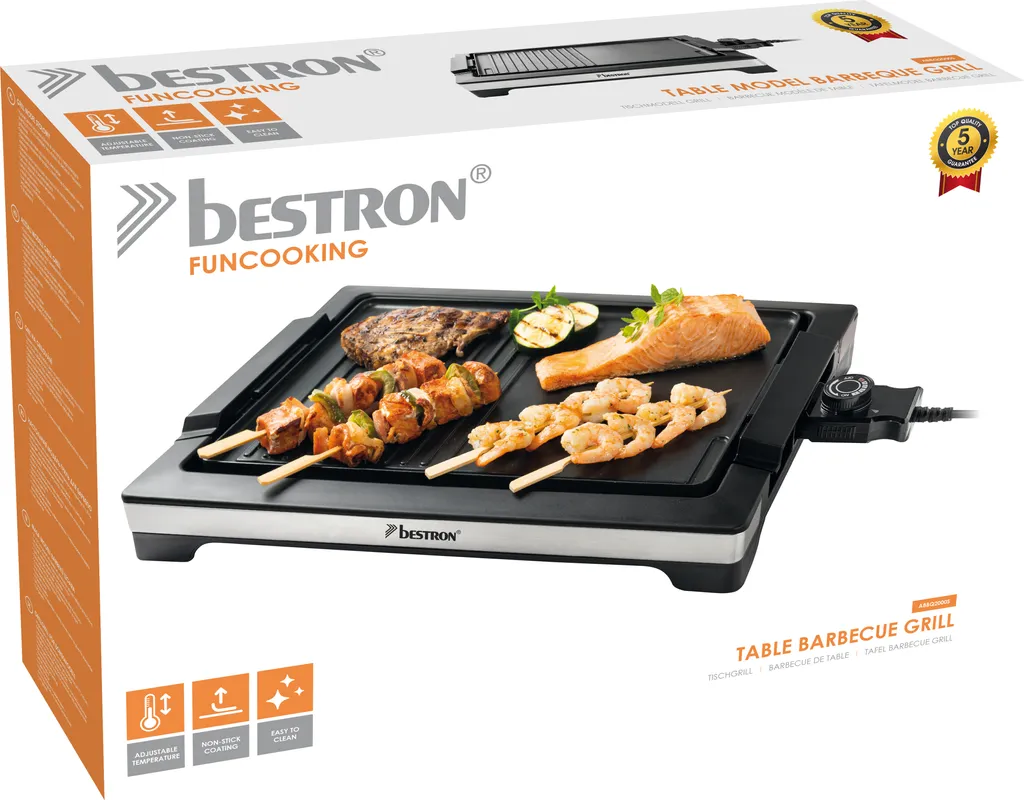 Bestron Elektrischer Tischgrill, Teppanyaki Mit Herausnehmbarer Grillplatte & Zwei Grilloberflächen, Antihaftbeschichtet, 2.000 Watt, Schwarz/Silber