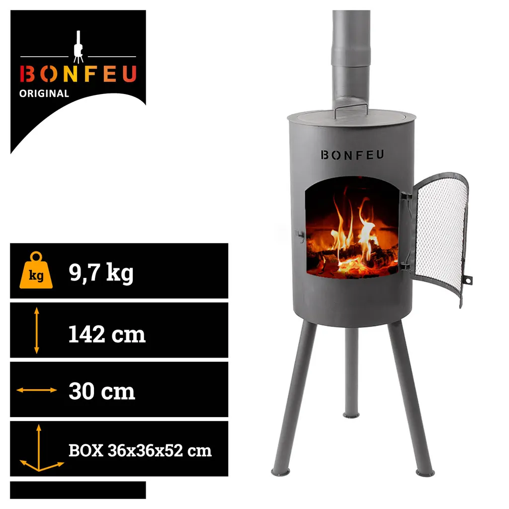 BonFeu – BonGiano SP (Ø 30 Cm) – Stahl – Gartenkamin – Terassenofen – Feuerstelle – 30 X 30 X 135 Cm – Schwarz