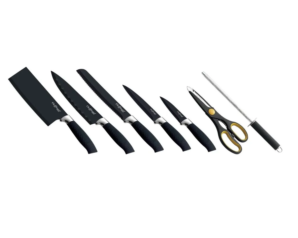 Cheffinger 8tlg. Messerständer Holzoptik Drehbar Schwarze Klingen Messerset