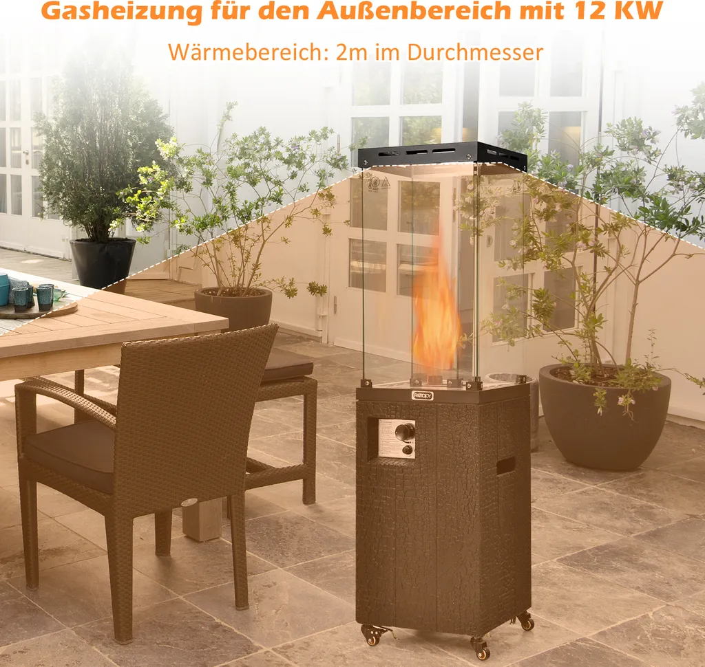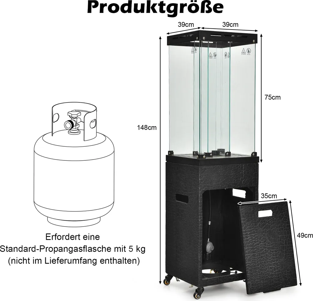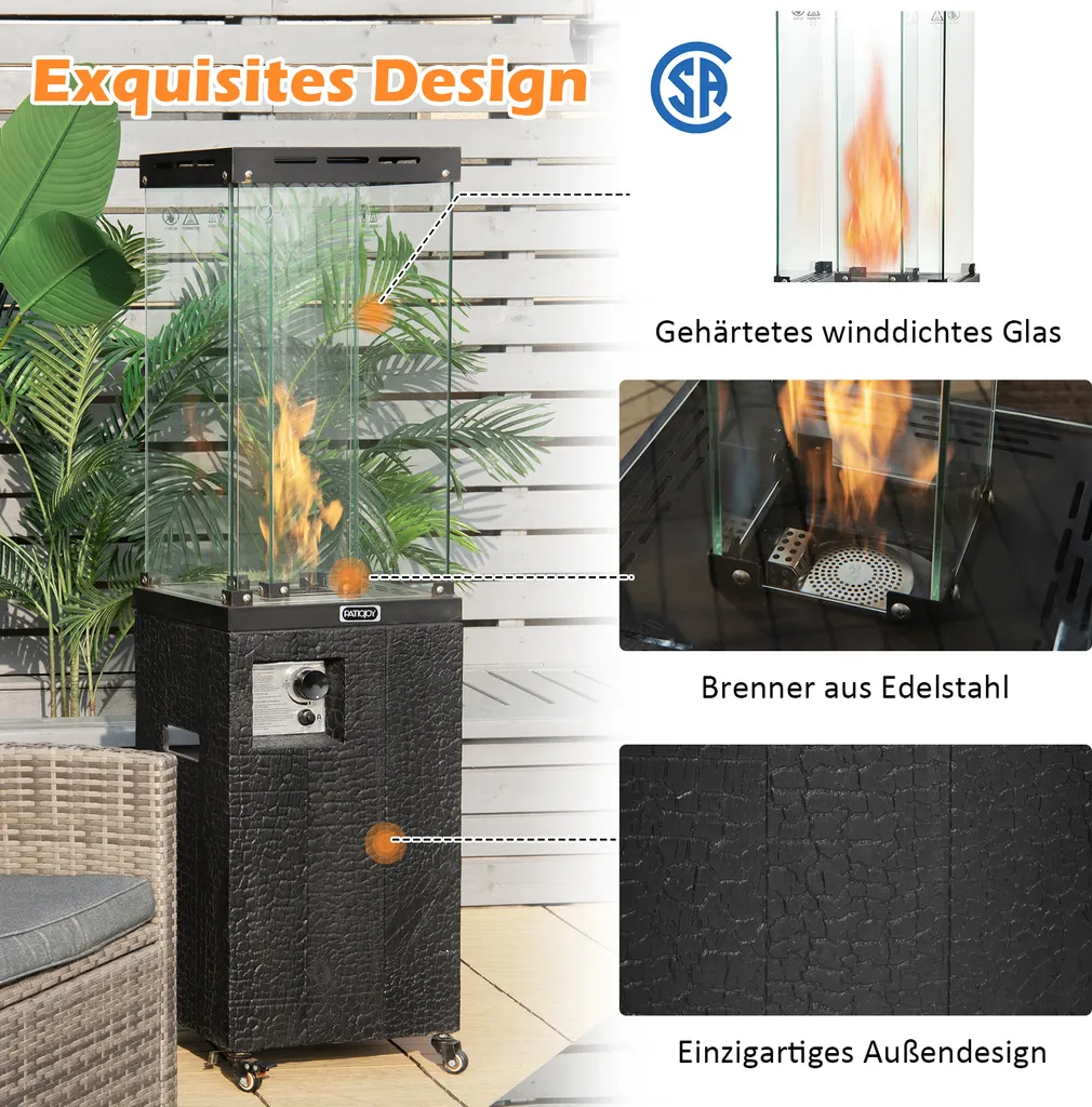 COSTWAY 41000 BTU Gas-Heizstrahler, Terrassenheizer Mit Abschließbaren Rädern & Verstellbarer Füße, Gasheizstrahler Mit Wasserdichter Abdeckung, Winddichte Outdoor-Heizung Für Garten Veranda Hof (Schwarz)