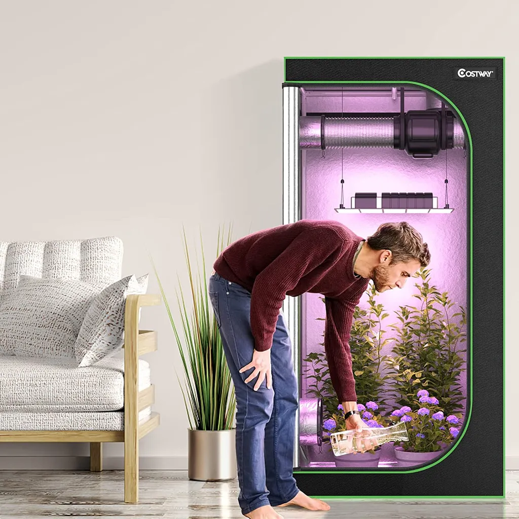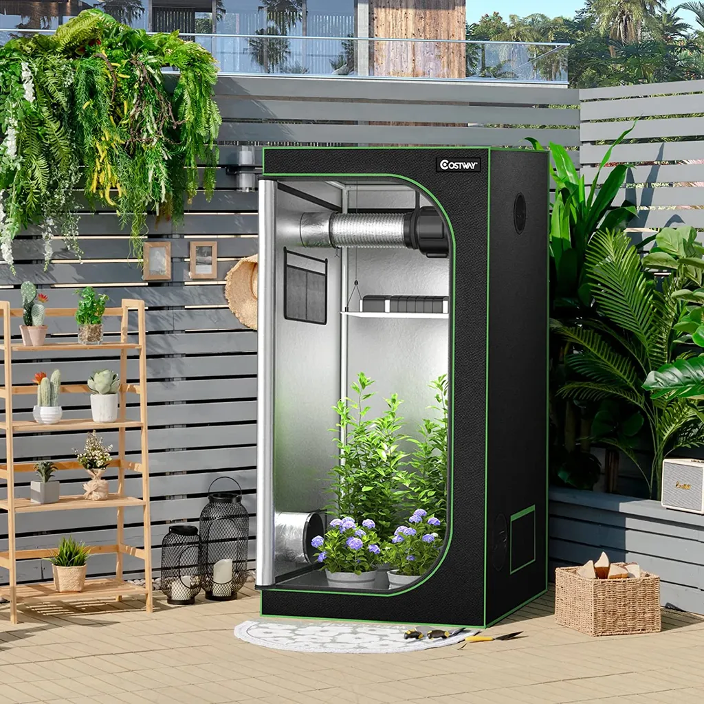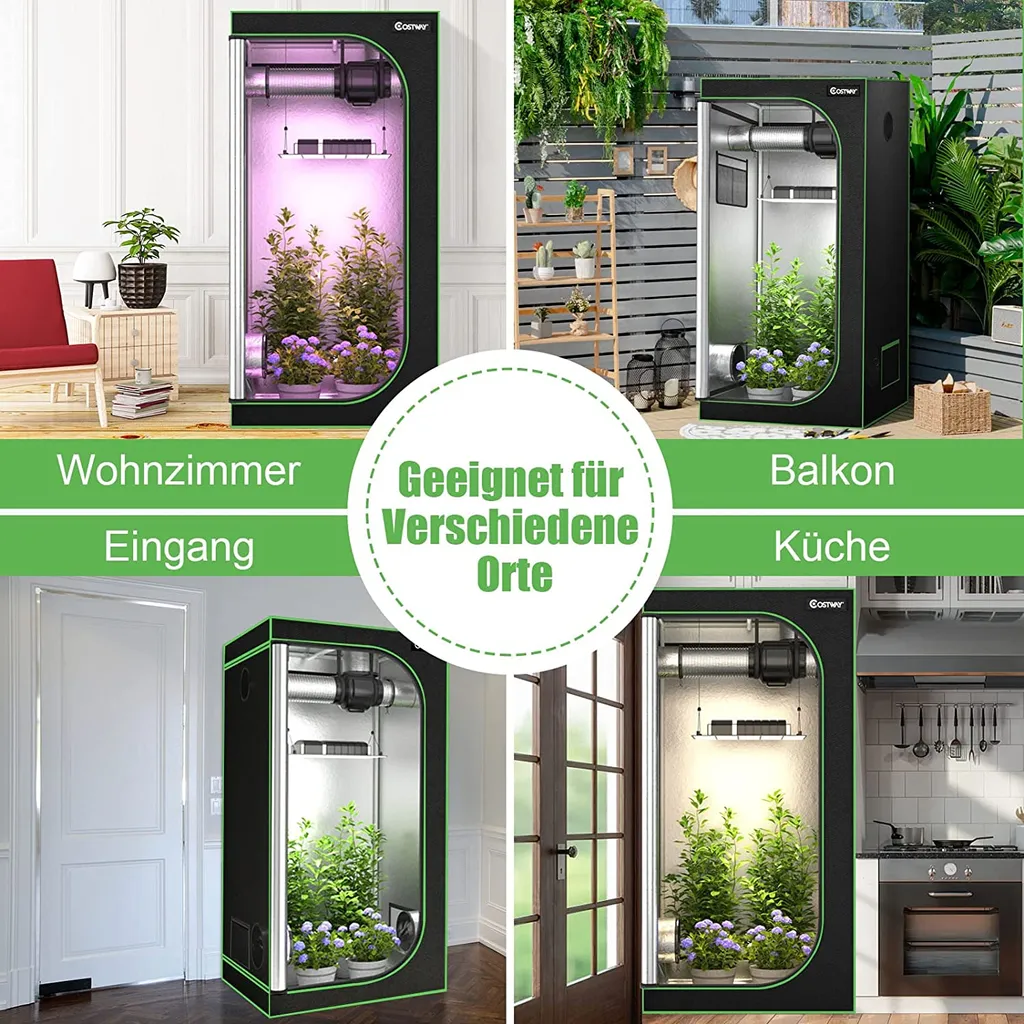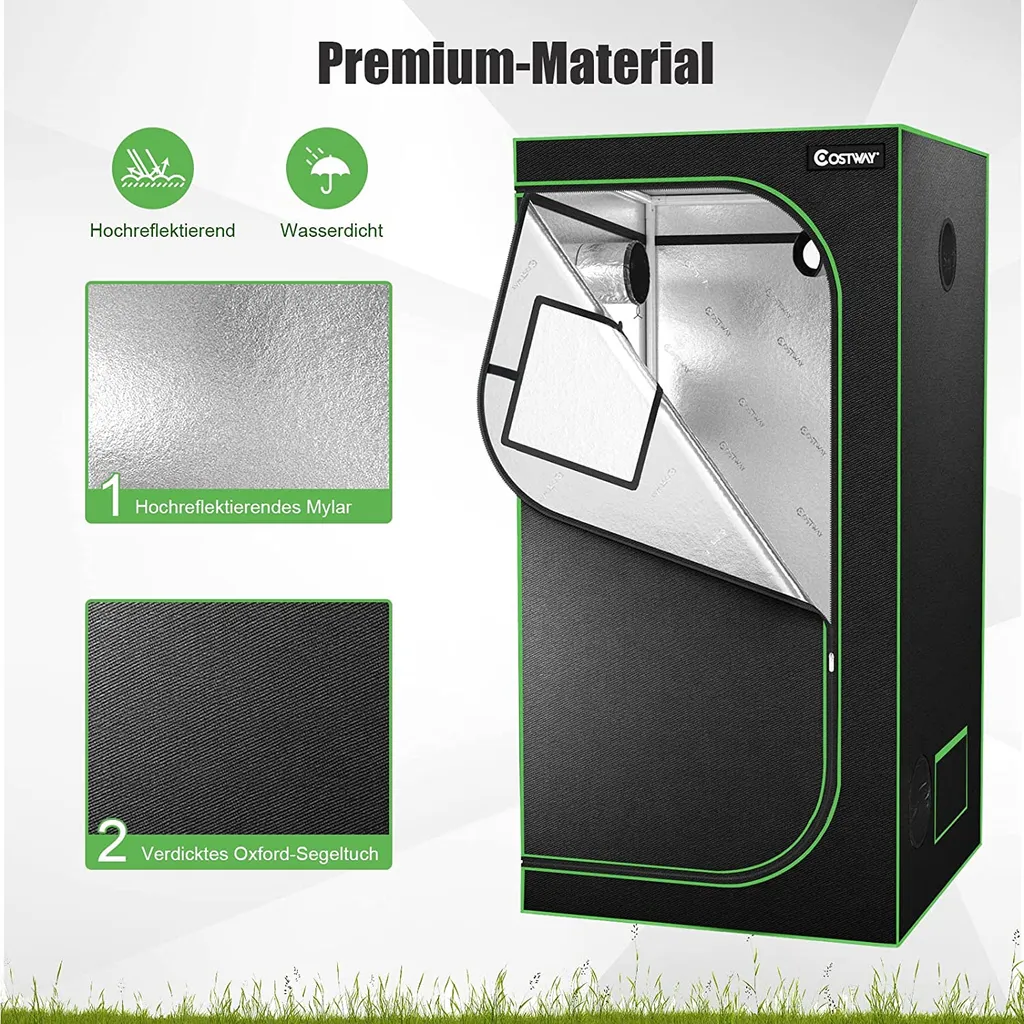 COSTWAY 90x90x180cm Growbox Pflanzenzelt Gewächshaus Mit Bodenwanne Aufbewahrungstasche Beobachtungsfenster & Doppelter Belüftung