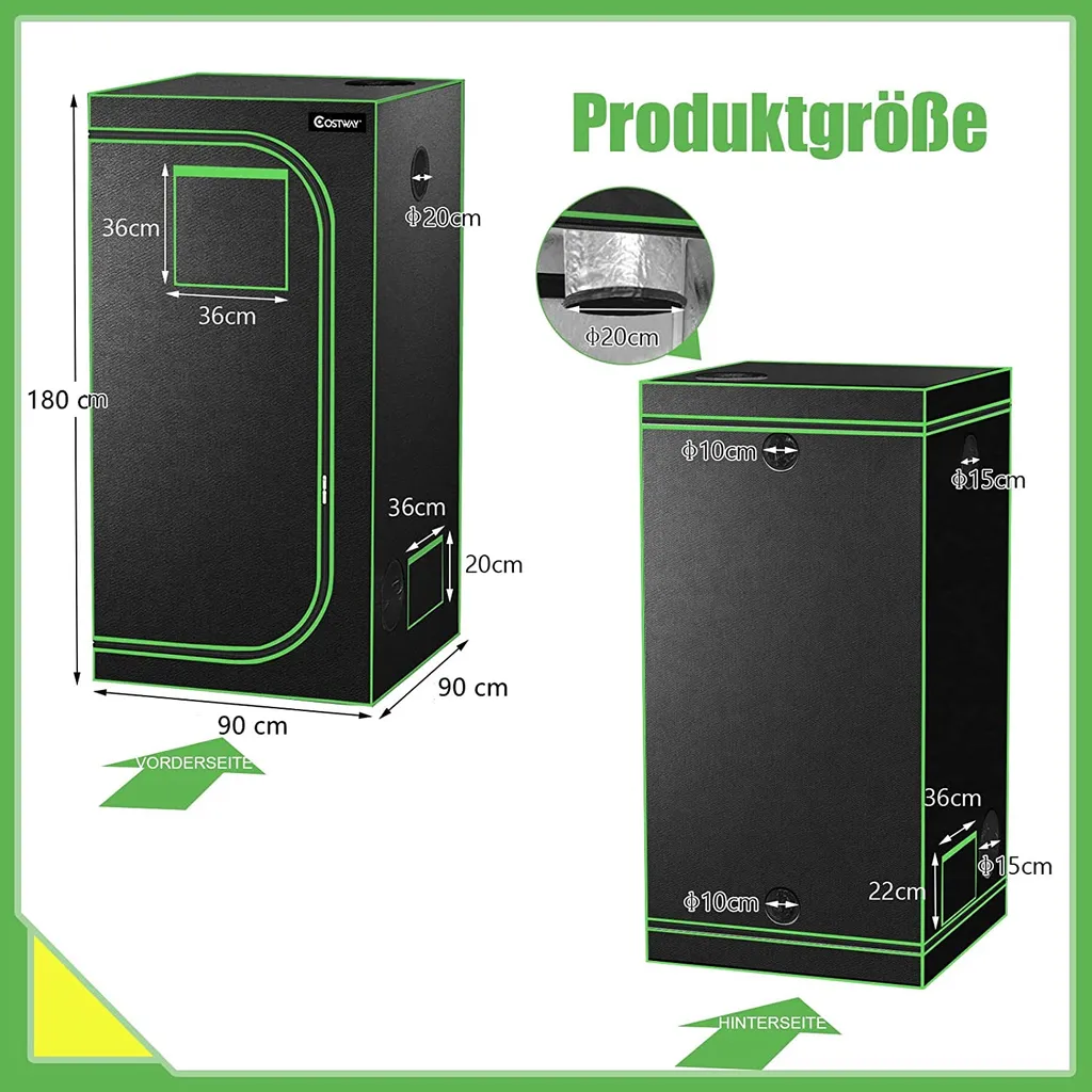 Schreibe die erste Rezension für „COSTWAY 90x90x180cm Growbox Pflanzenzelt Gewächshaus Mit Bodenwanne Aufbewahrungstasche Beobachtungsfenster & Doppelter Belüftung“ Antwort abbrechen