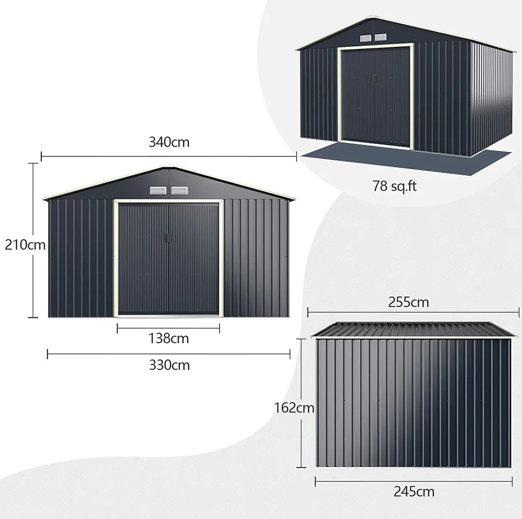 COSTWAY Gerätehaus Metall, 340x255x210 Cm, Geräteschuppen Abschließbar, Gartenhaus Mit 4 Luftschlitzen & Schiebetür, Garten Schuppen Für Rasenmäher Fahrräder, Metallschuppen Geräteschuppen Outdoor