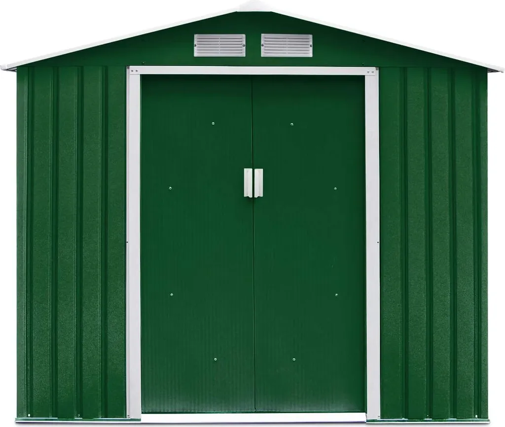 COSTWAY Metall Gerätehaus Inkl. Metallfundament 213x127x185cm Gartenhaus Geräteschuppen Garten Schuppen Dunkelgrün
