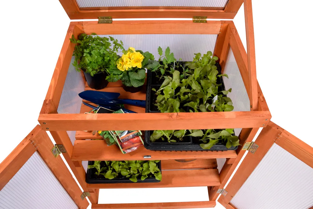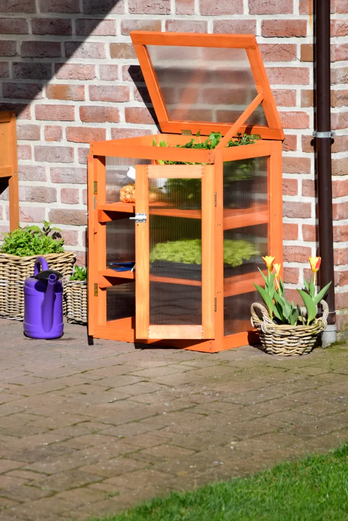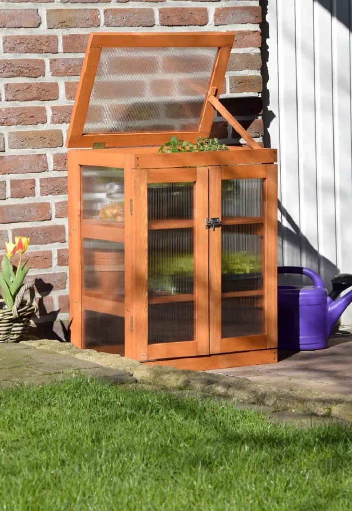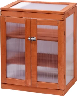 Dobar Mini-Gewächshaus Mit Polycarbonat, Balkon Und Indoor-Treibhaus, Holz, 58 X 43 X 76 Cm, Braun