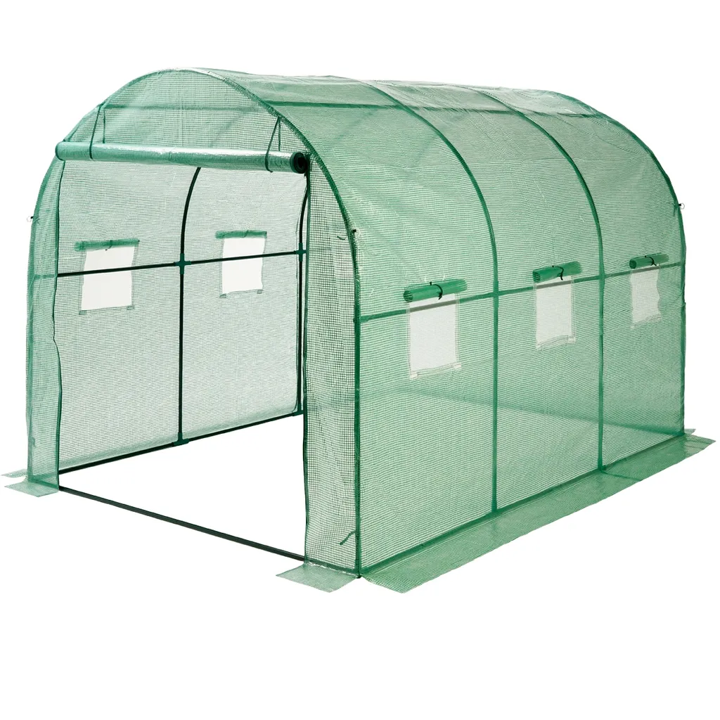 ECD Germany Gewächshaus Mit Metallrahmen – 6m² – 300x200x200 Cm – Grün – Reißverschluss Und 6 Fenstern – Foliengewächshaus Bogendach Treibhaus Frühbeet Pflanzenhaus Tomatenhaus Folientunnel