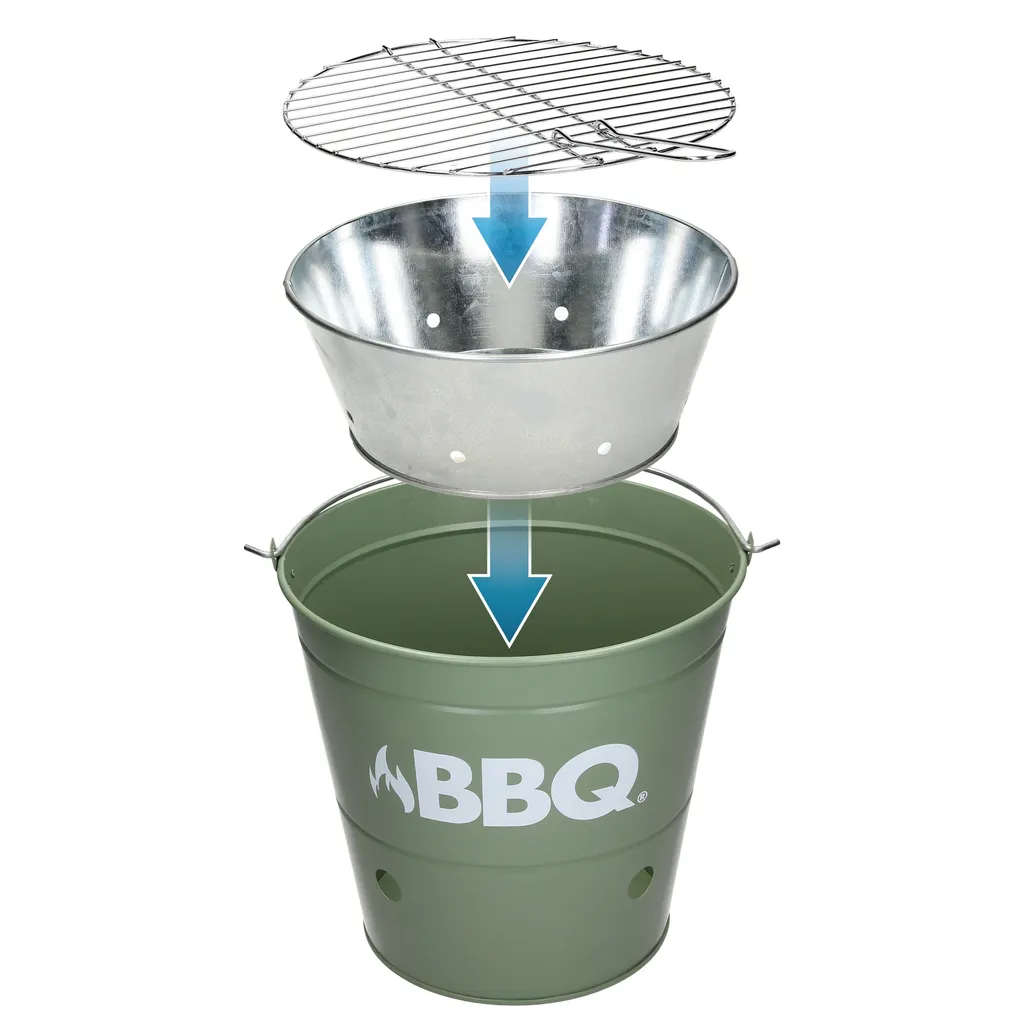 ECD Germany Grilleimer Ø 25cm Mit Grillrost Und Tragegriff, Eimergrill Aus Edelstahl In Matt Grün, Minigrill Mit Belüftung, Campinggrill Holzkohlegrill BBQ Grill Picknickgrill Grillkübel Feuerkübel