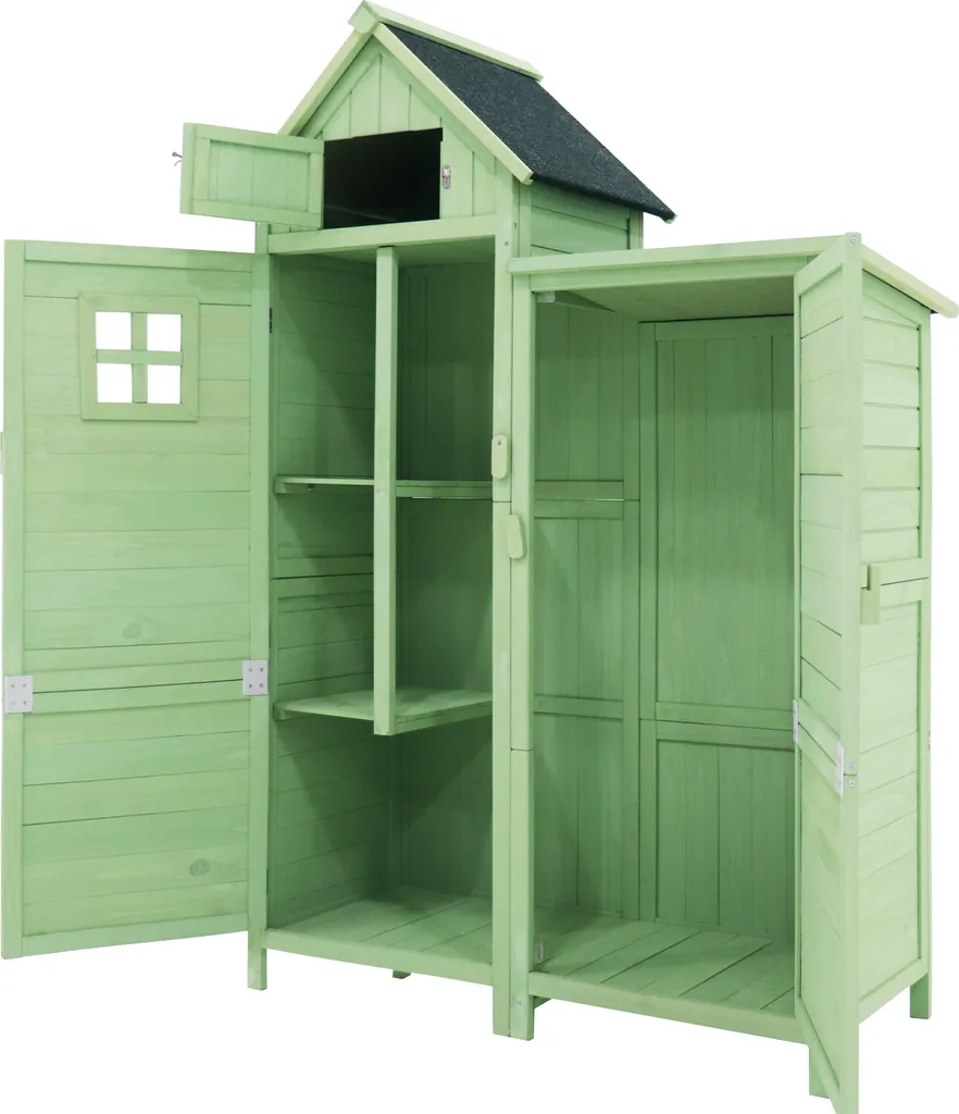 Flieks Geräteschrank Holz Gartenschrank Wetterfest, Geräteschuppen Gartenhaus Klein, Gerätehaus Gartengerätehaus, 118.5×54.3x 173 Cm