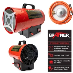 Grafner® 10kW Gasheizgebläse Gasheizer Für Gasflasche Gasdruckregler Bauheizer 700mbar Gasheizgerät