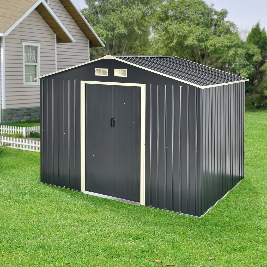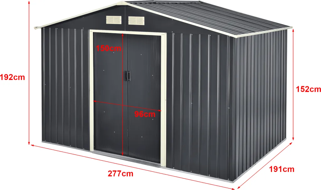 Gartenschuppen 277x191x192cm Aus Metall Gerätehaus Dunkelgrau
