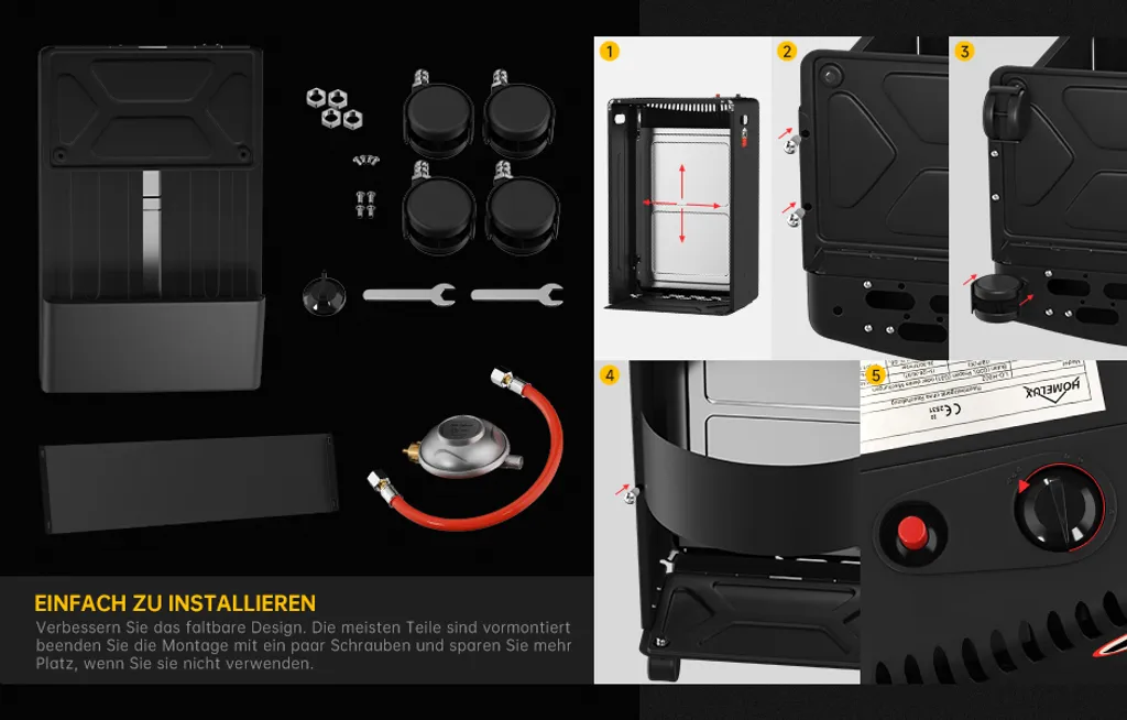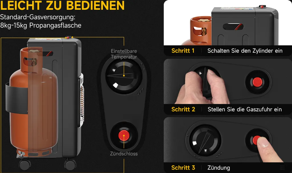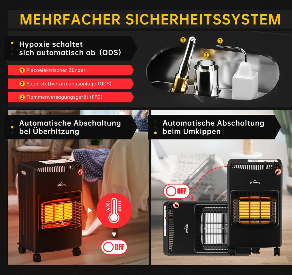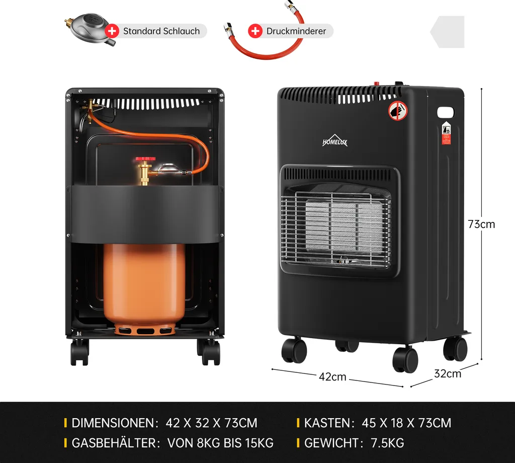 Gasheizung Für Innenräume,HOMELUX Gasheizung 4200 Watt Gasofen Für Innenräume Inkl. Schlauch Und Druckminderer,Infrarot Keramikbrenner,Heizstrahler,Butan- Oder Propangasflaschen Bis 15kg