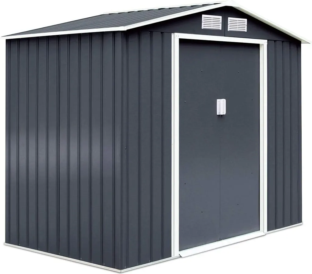 GOPLUS Gerätehaus 213x127x185cm, Geraetehaus Metall, Schuppen Gartenhaus Geraeteschuppen Inkl. Metallfundament Aus Stahl, Grau