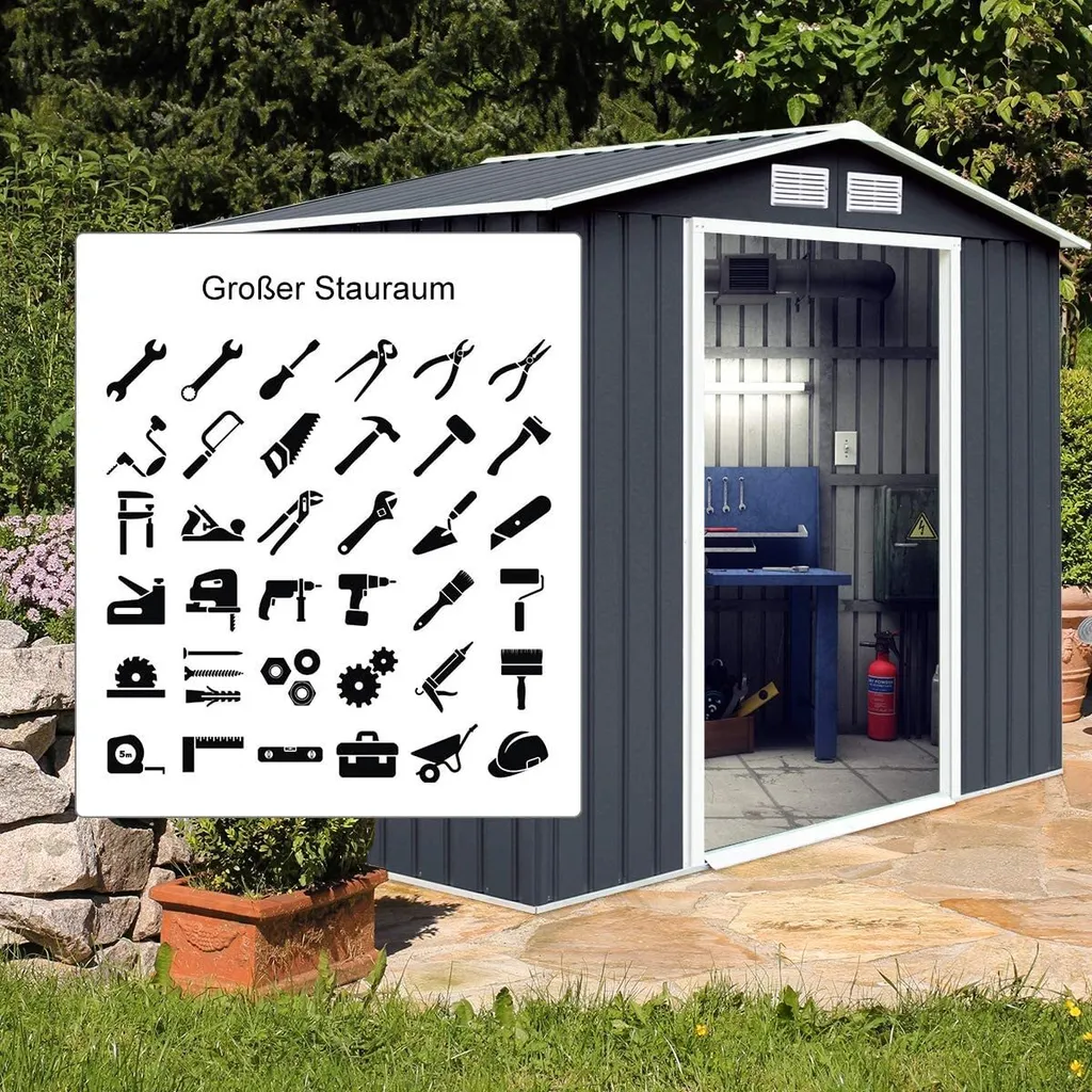 Schreibe die erste Rezension für „GOPLUS Gerätehaus 213x127x185cm, Geraetehaus Metall, Schuppen Gartenhaus Geraeteschuppen Inkl. Metallfundament Aus Stahl, Grau“ Antwort abbrechen