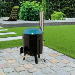 Schwenkgrill Schwarz Aus Stahl Dreibein Mit Grillrost Höhenverstellbar Holzkohlegrill Garten BBQ
