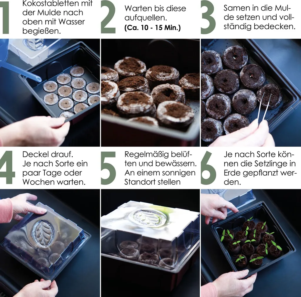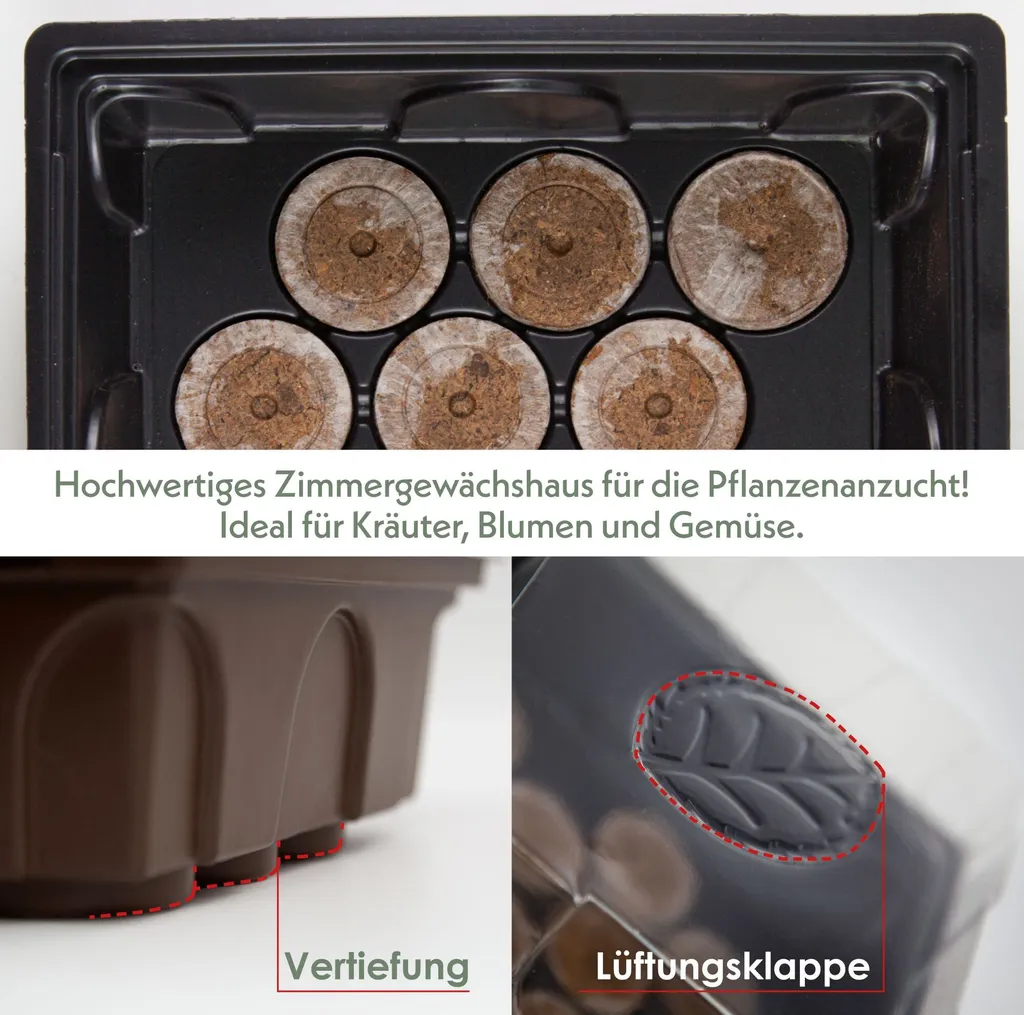 HappySeed Gewächshaus Mit 12 Kokos Quelltabletten – Zur Vorkultivierung Und Anzucht Von Kräutern, Gemüse Und Blumen