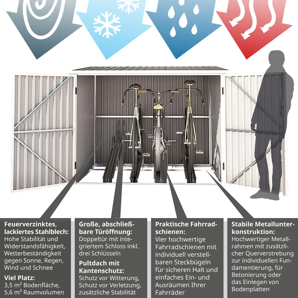HATTORO Fahrrad-Garage Für 4 Fahrräder Fahrrad-Schuppen Fahrrad-Box Abschließbar Hellgrau