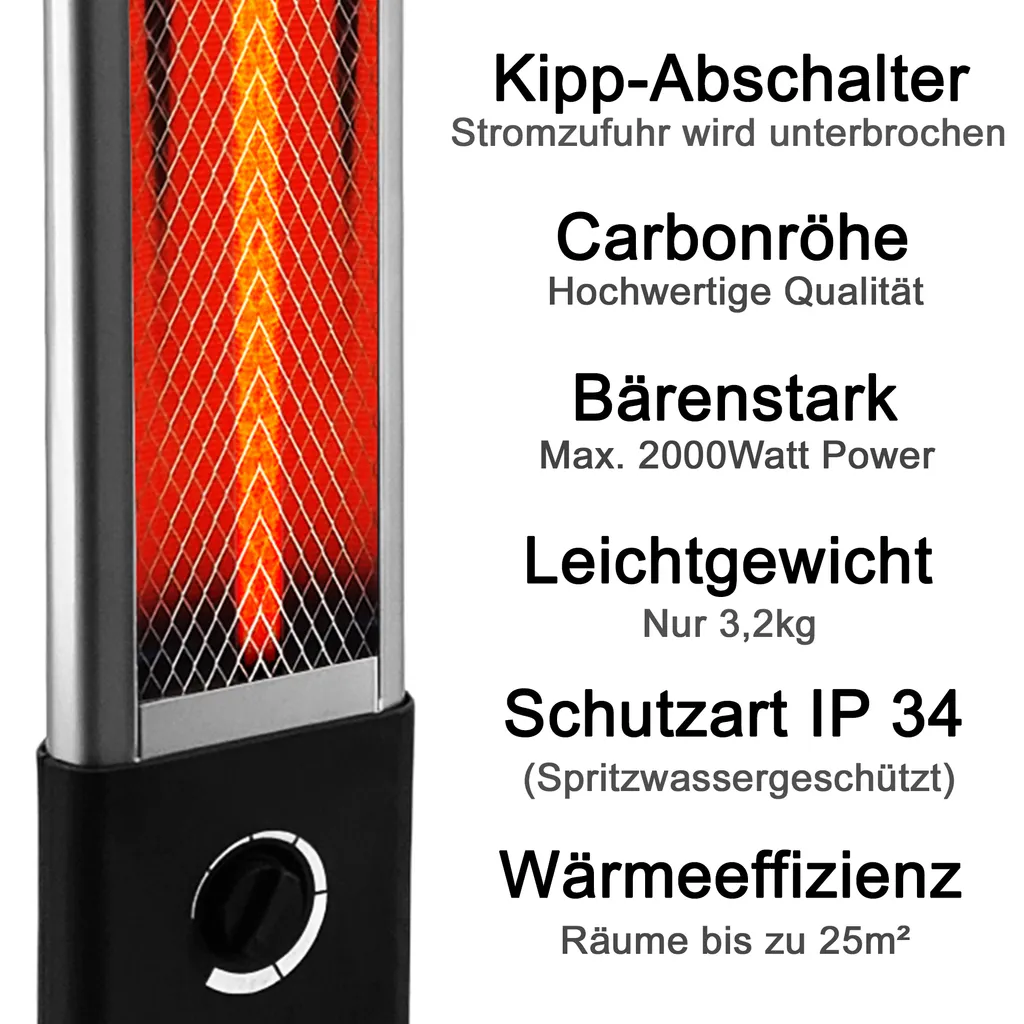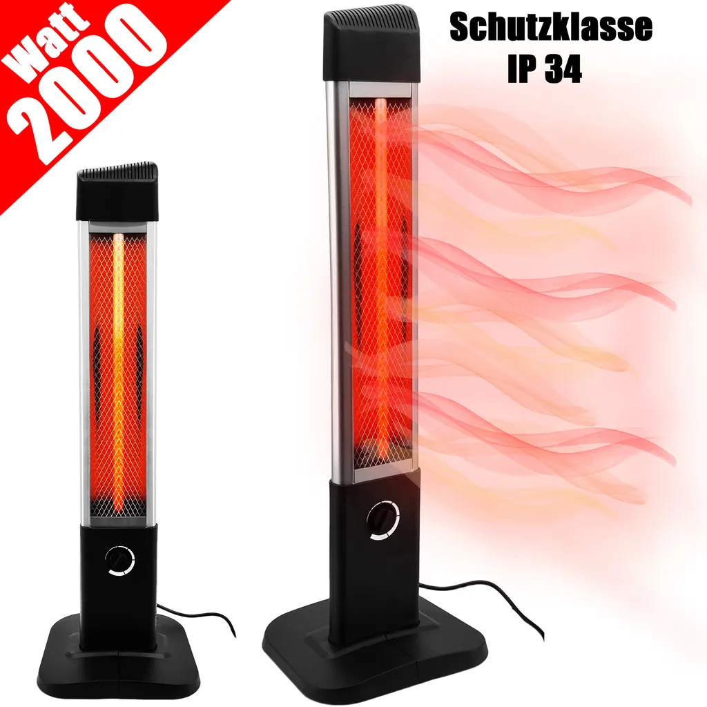 Infrarot Stand-Heizstrahler 2000W Infrarotstrahler | Wärmestrahler Terrasse Elektrisch Mit 6 Heizstufen | Terrassenstrahler Innen & Außen | Standheizung Mit Schutzklasse IP34