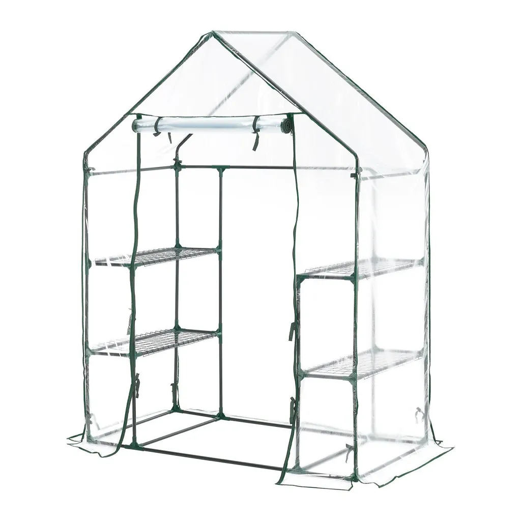 Juskys Foliengewächshaus 1 M² Aufrollbare Tür – Gewächshaus Für Tomaten – Stabiles Balkon Treibhaus Mit 4 Ebenen, Großem Eingang, PVC-Abdeckung