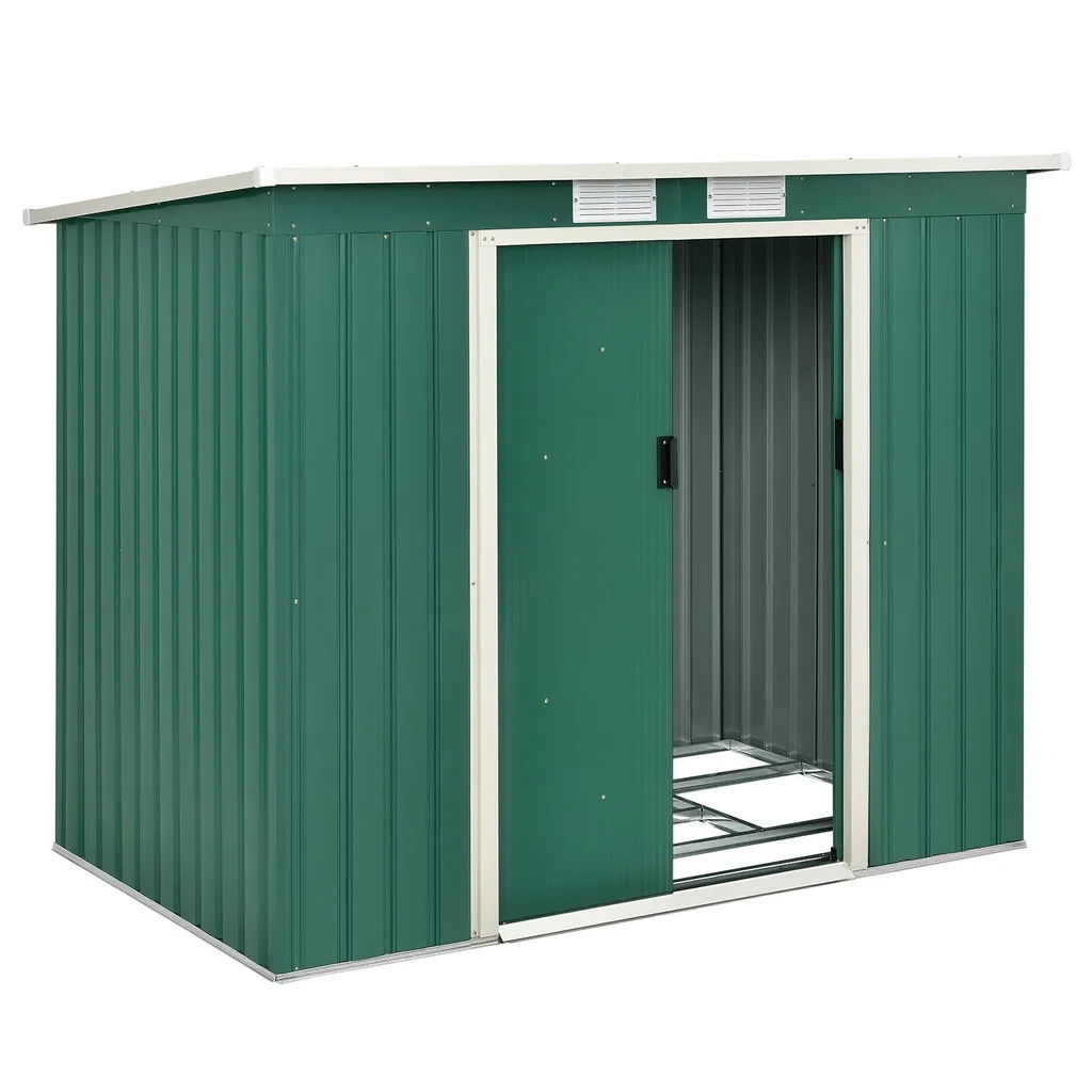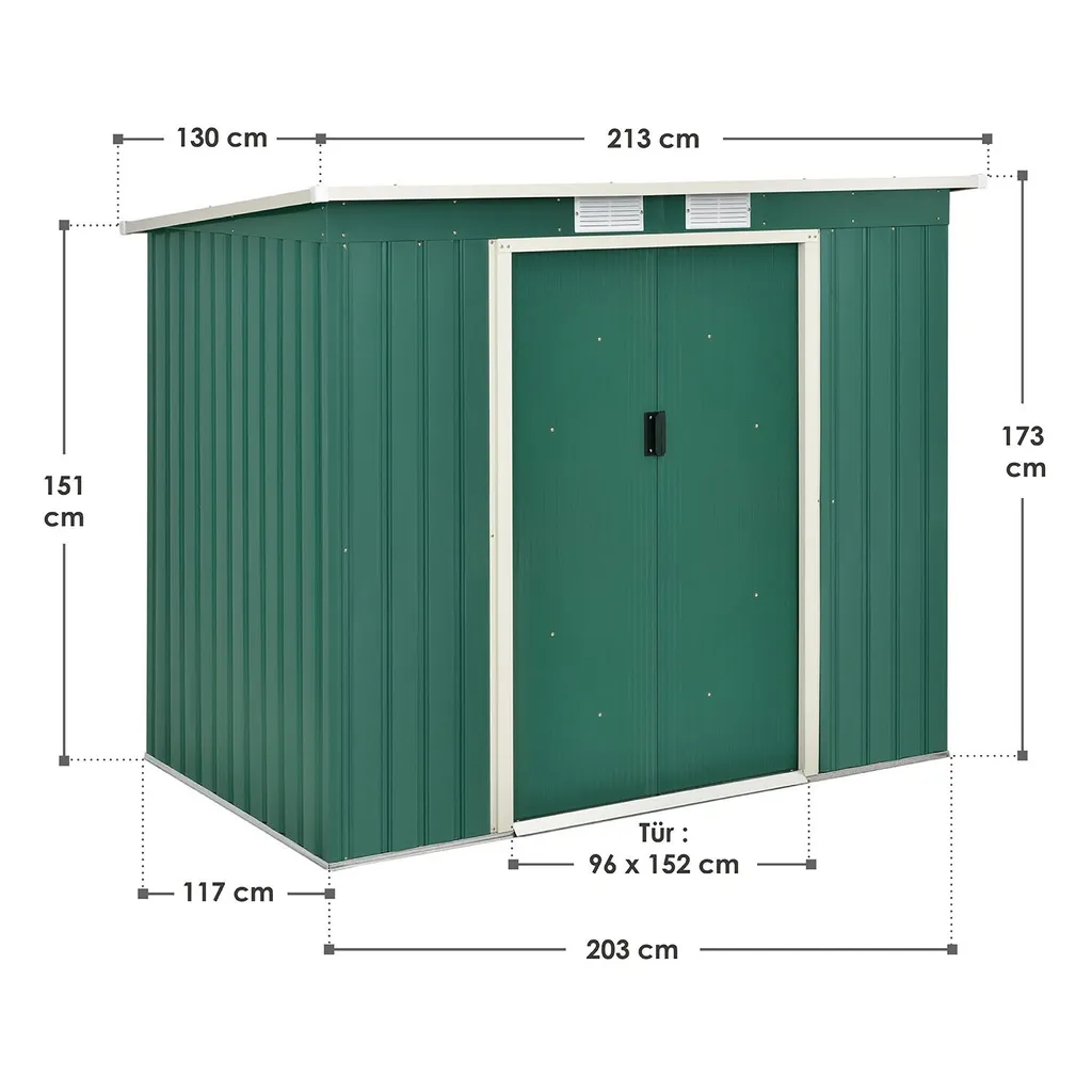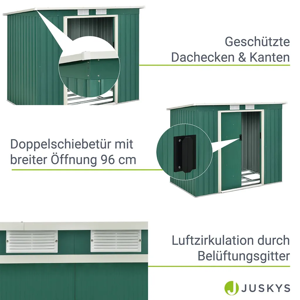 Juskys Metall Gerätehaus M Mit Pultdach, Schiebetür & Fundament – 4m³ – 213×130×173 Cm – Grün – Geräteschuppen Gartenhaus Garten Schuppen