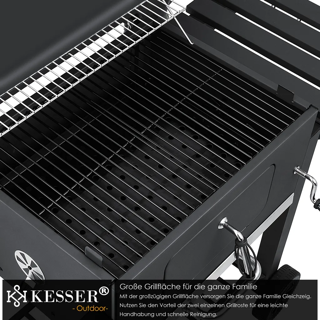 KESSER® Grill Grillwagen XXL Holzkohlegrill Mit Deckel, Rädern, Edelstahl-Griff, Grillrost Und Thermometer Holzkohle Kohlegrill Wagen Groß Kohle BBQ Barbeque Camping, Terrasse, Garten, Farbe:Grau