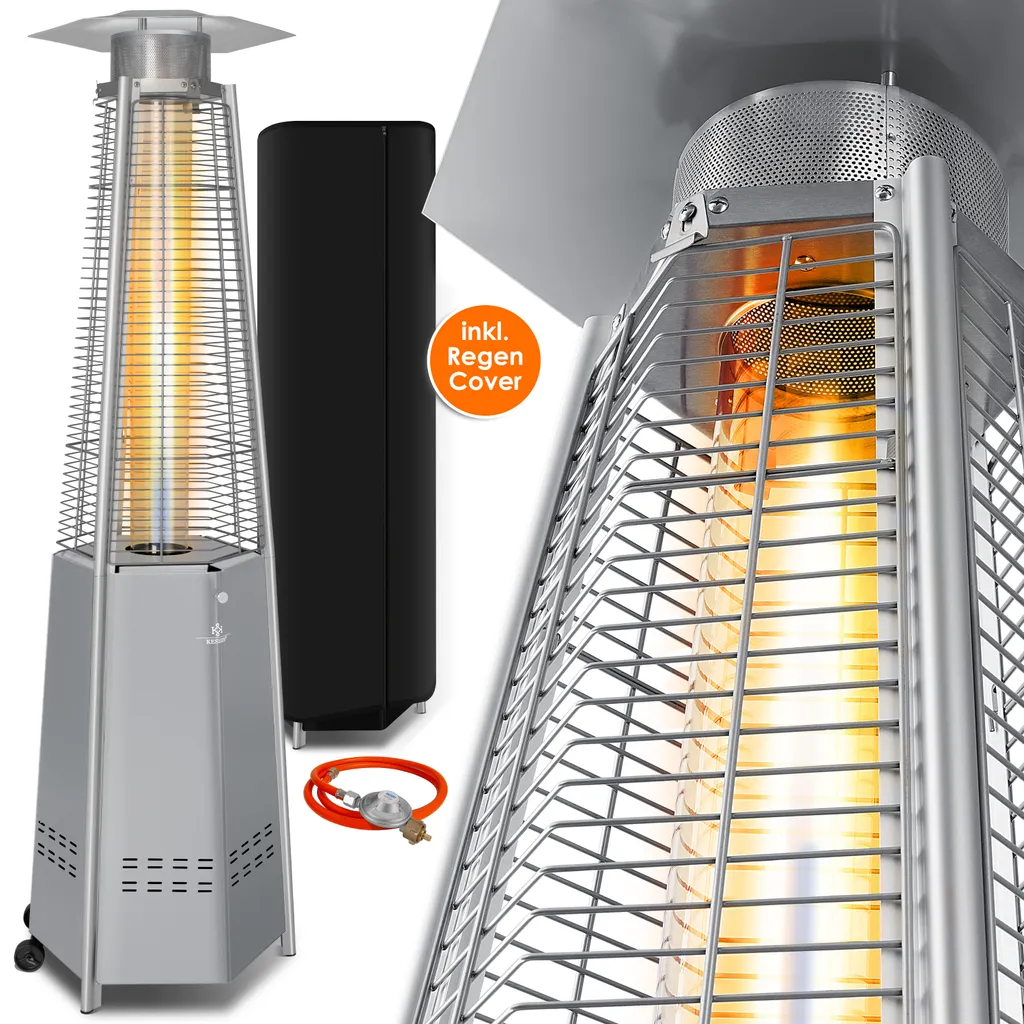 KESSER® Heizstrahler Pyramide Für Terrasse Terrassenheizer Gas 12,5 KW Gasheizstrahler Gasheizer , Wärmestrahler, Heizgerät, Inkl. Schutzhülle , Mit Gasschlauch Druckminderer , Wärmeabzug Edelstahl , Farbe:Grau