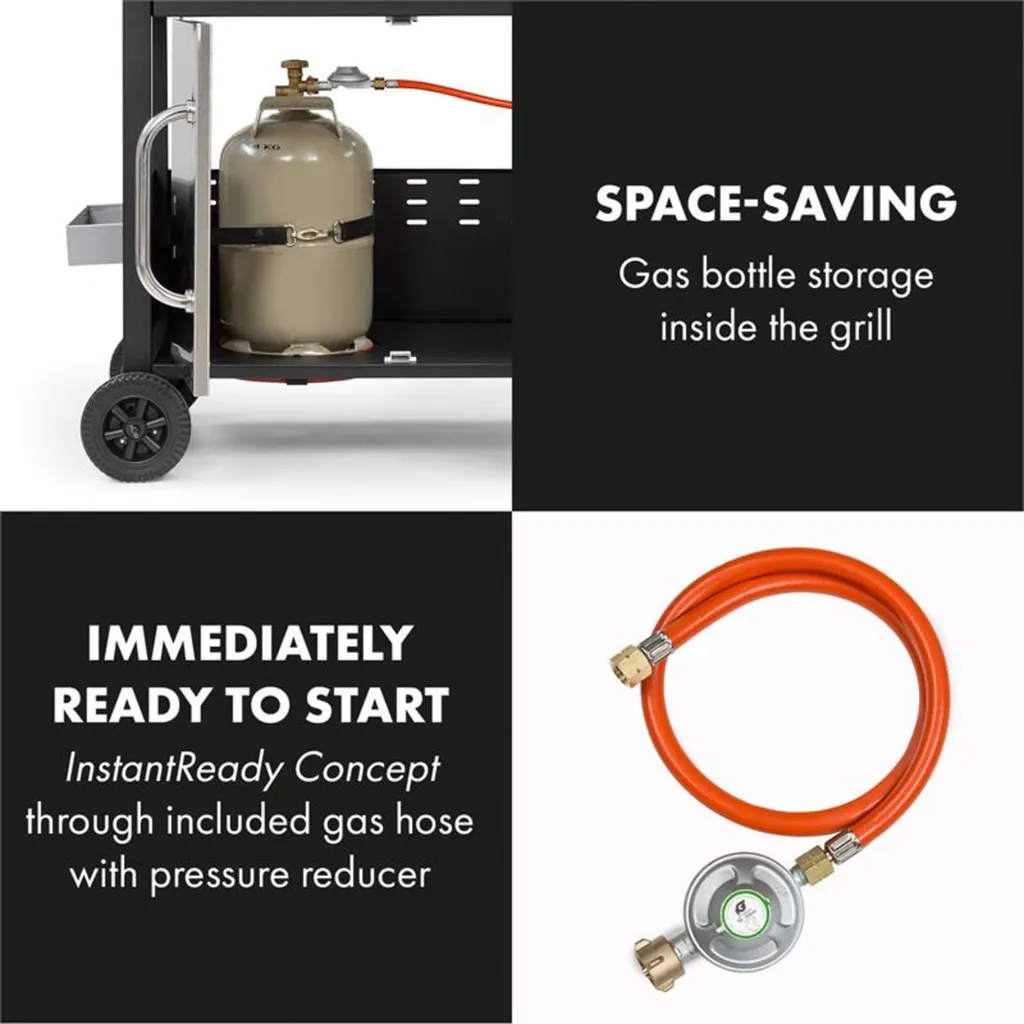 Klarstein Gasgrill Mit Großer Grillfläche, Gasgrill 1 Seitenbrenner & 4 Brenner, 17,1kW Edelstahl-Gasgrill, BBQ Gasgrill Für Balkon & Garten, Grill Für Propan, Gasgrills Mit 5 Brenner & Thermometer