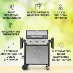 Klarstein Gasgrill Mit Smoker, Gasgrill Mit 4 Brenner, 13,5kW Edelstahl-Gasgrill, BBQ Gasgrill Für Balkon & Garten, Grill Für Gas & Kohle, Gasgrills Mit 4 Brenner & Thermometer