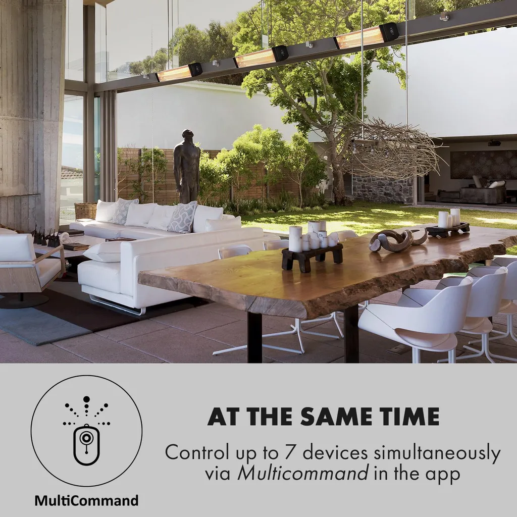 Klarstein Smartwave Infrarot-Heizstrahler Terrassenheizstrahler , IR ComfortHeat , Carbonfaserröhre , 2400 Watt , Thermostat , Appsteuerung , OpenWindow Detection , Indoor & Outdoor , IP65 , Wand- Oder Deckenmontage , Aluminiumgehäuse , Fernbedienung , Weiß
