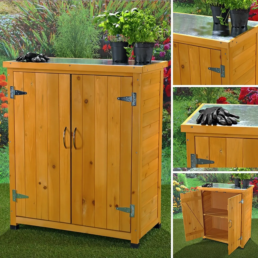 Mucola Geräteschrank Gerätehaus Gartenschuppen Schrank Schuppen Gartenschrank + 2 Türen Schrank Pflanztisch Terrassenschrank Mehrzweckschrank