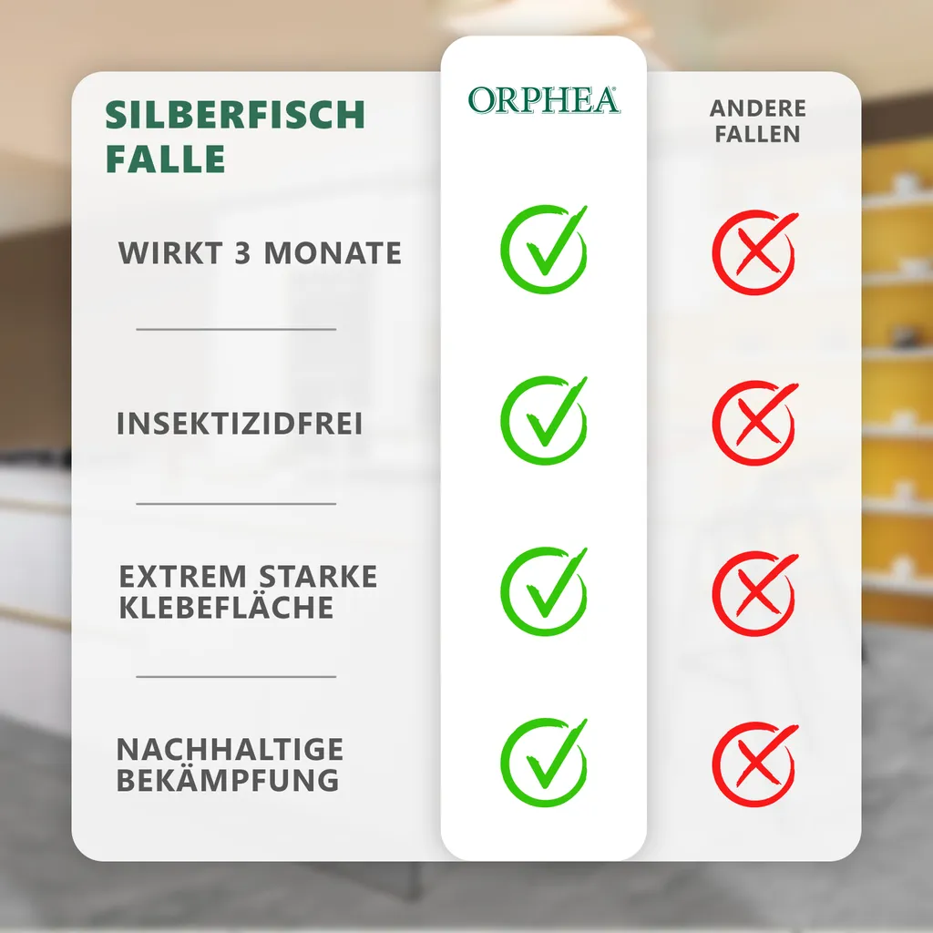Orphea Silberfische Falle, Kakerlaken Falle, 3 Monate Langzeitwirkung, Ohne Insektizide, Silberfische Klebefalle
