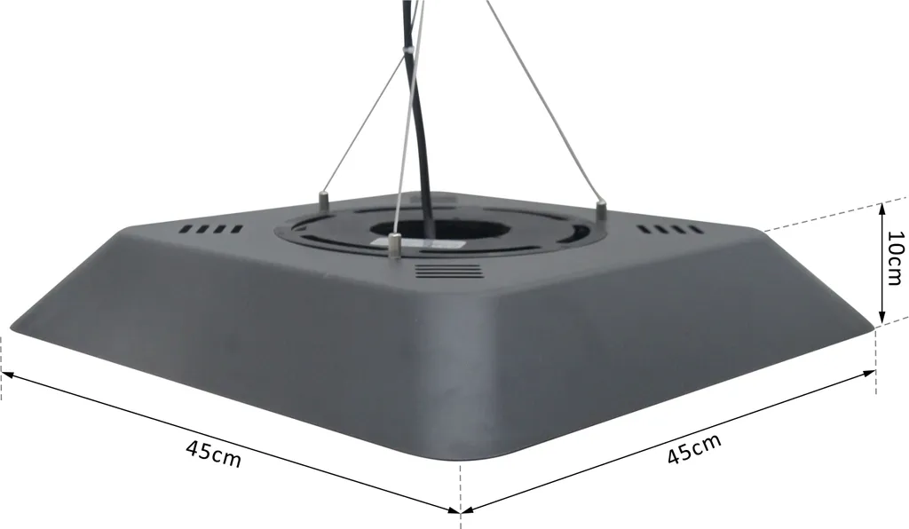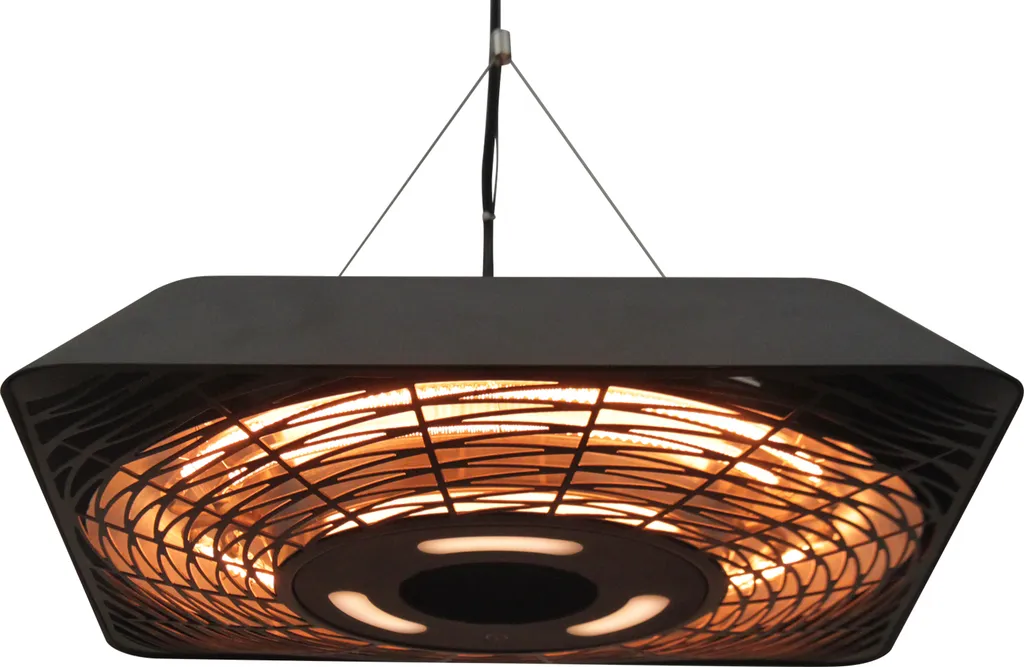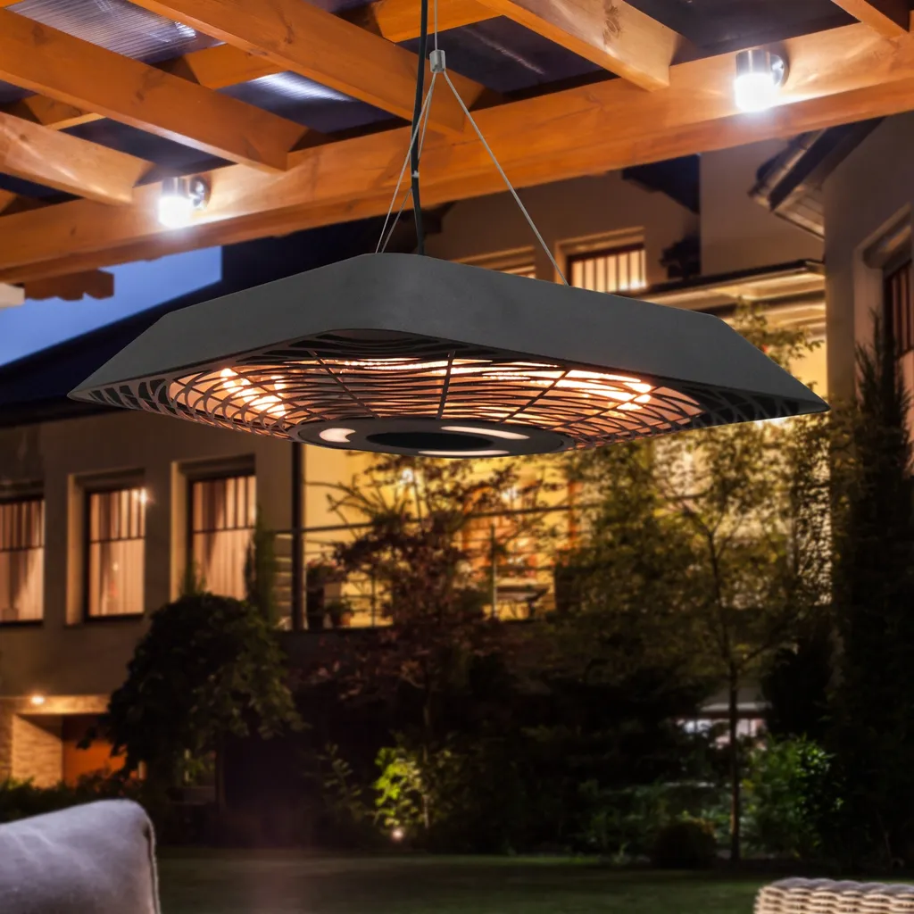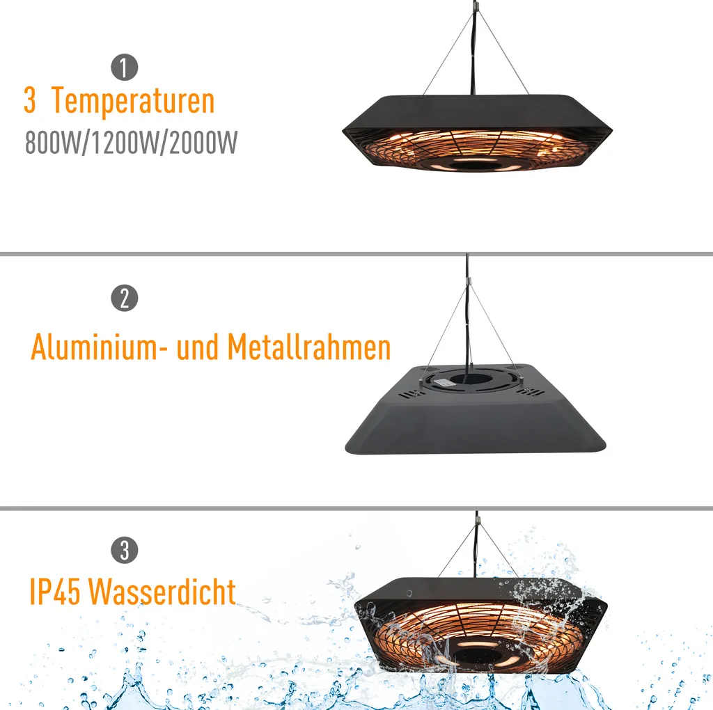 Outsunny Deckenheizstrahler 800W/1200W/2000W 5 Modi Heizstrahler IP45 Elektro Heizpilz Mit Fernbedienung LED-Licht Alu Glas Schwarz 45 X 45 X 10 Cm