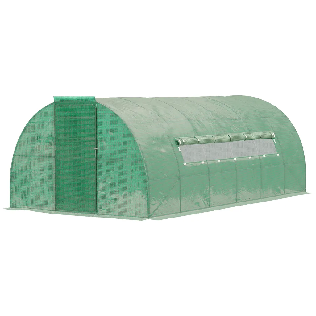 Outsunny Foliengewächshaus 6 X 3 X 2 M Tunnel Gewächshaus Treibhaus Pflanzenhaus Folienzelt 2 Fenster Mit 2 Regale Wetterbeständig Gitterfolie Regale Wetterbeständig Grün