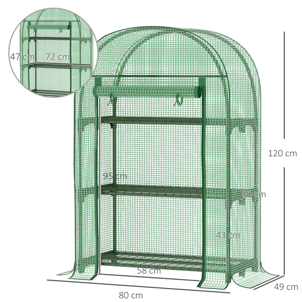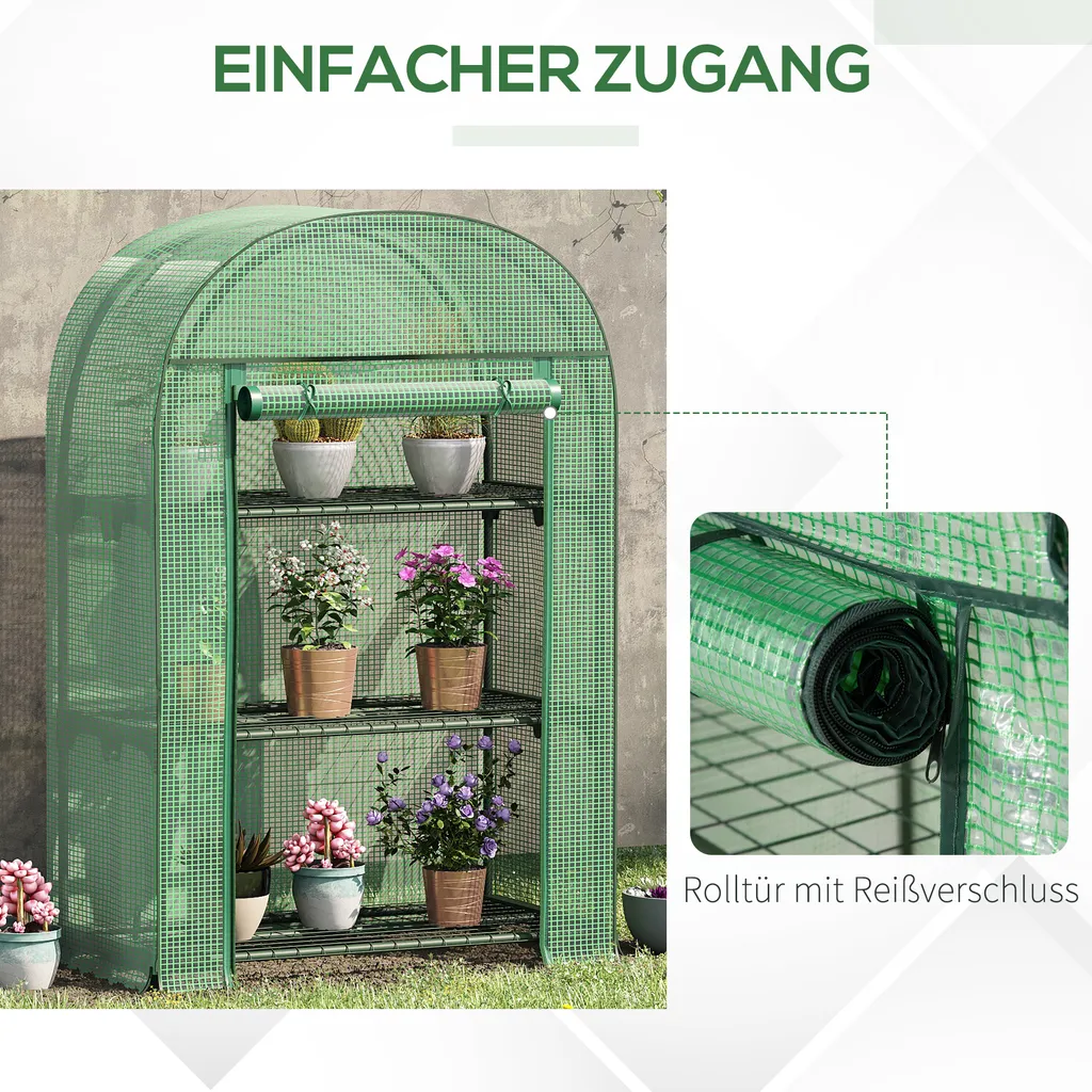 Outsunny Foliengewächshaus Balkon Mit 4 Ablagen Mini Gewächshaus Treibhaus Tomatenhaus Pflanzenhaus Frühbeet Metall Grün 80 X 49 X 120 Cm