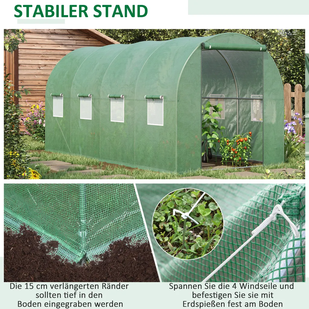 Outsunny Foliengewächshaus Begehbares Gewächshaus 4 X 2 M Polytunnel Folientunnel Treibhaus Frostschutz Stahlrohr Dunkelgrün