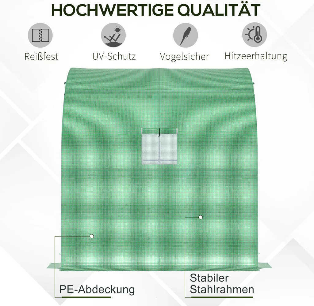Outsunny Foliengewächshaus Gewächshaus Treibhaus Mit 2 Türen Pflanzenaufzucht UV-Schutz Stahl PE Grün 200 X 100 X 213 Cm