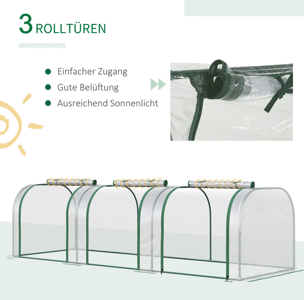 Outsunny Foliengewächshaus, Gewächshaus, Treibhaus Mit Tür, Frühbeet, Pflanzenhaus, Pflanzenaufzucht, Folie, Stahl, Transparent, 295 X 100 X 80 Cm