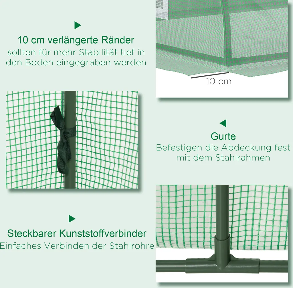 Outsunny Foliengewächshaus Mini Tunnelgewächshaus Mit Mesh Fenster, UV-beständige Frühbeet Für Garten Zur Aufzucht, PE Folie, Grün, 300 X 80 X 45 Cm
