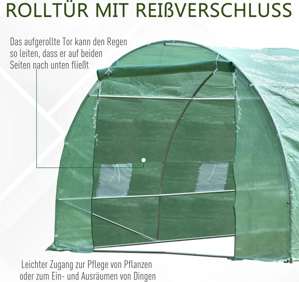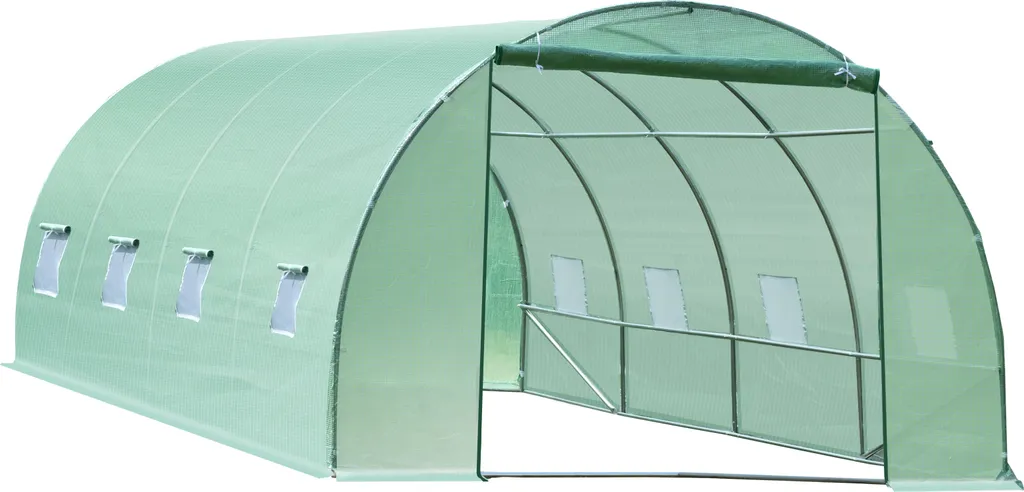 Outsunny Foliengewächshaus Tomatengewächshaus Treibhaus Folientunnel Frühbeet Mit Fenster Grün 590 X 300 X 200 Cm