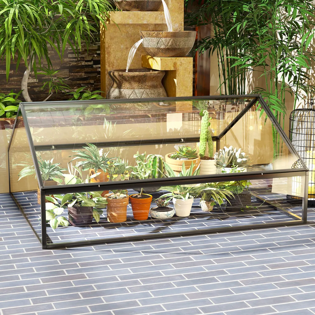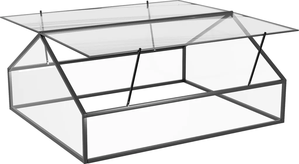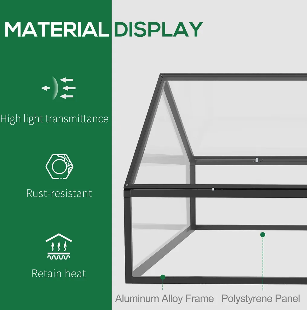 Outsunny Frühbeet Alu Treibhaus Gewächshaus Frühbeetkasten Pflanzenbeet Mit Abdeckung Polystyrolplatte Wetterfest Schwarz+Transparent 117 X 97 X 52 Cm