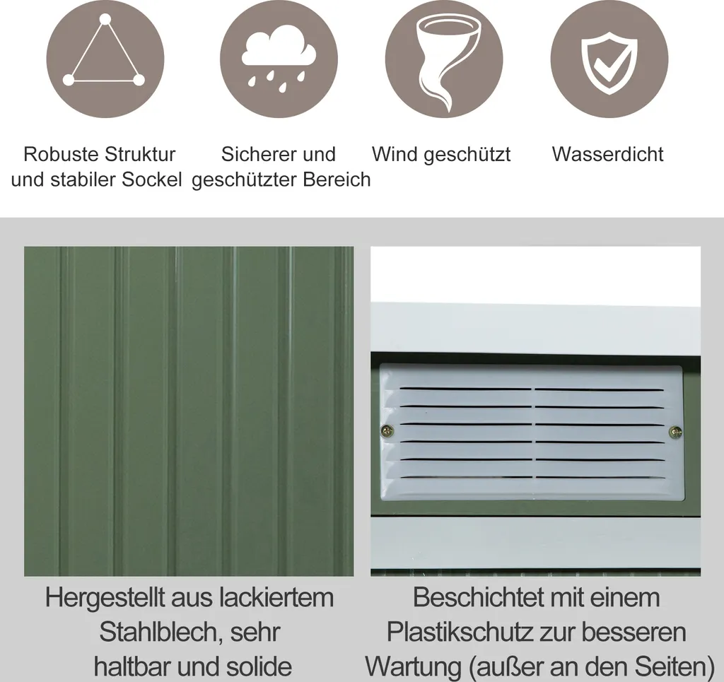 Schreibe die erste Rezension für „Outsunny Gerätehaus, Gartenhaus, Geräteschuppen Mit Schiebetür, Lüftungsfenster, Pultdach, Outdoor, Stahl, Hellgrün, 277 X 130 X 173 Cm“ Antwort abbrechen