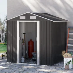 Outsunny Geräteschuppen Gerätehaus Geräteschrank Schuppen Garten 4 Fächer Grau 87 X 46,5 X 160cm