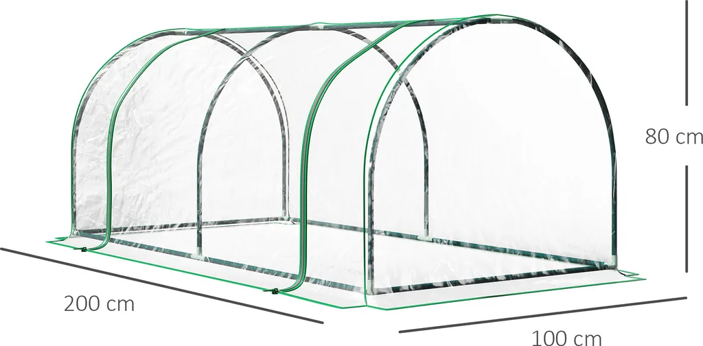 Outsunny Gewächshaus, Treibhaus Mit Tür, Frühbeet, Pflanzenhaus, Pflanzenaufzucht, Stahl PVC, 200 X 100 X 80 Cm