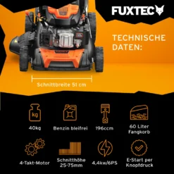 FUXTEC FX-RM5396P, Rasenmäher Mit Radantrieb, 53,3 Cm, 2,5 Cm, 7 Cm, 1001 M², Rotorblätter