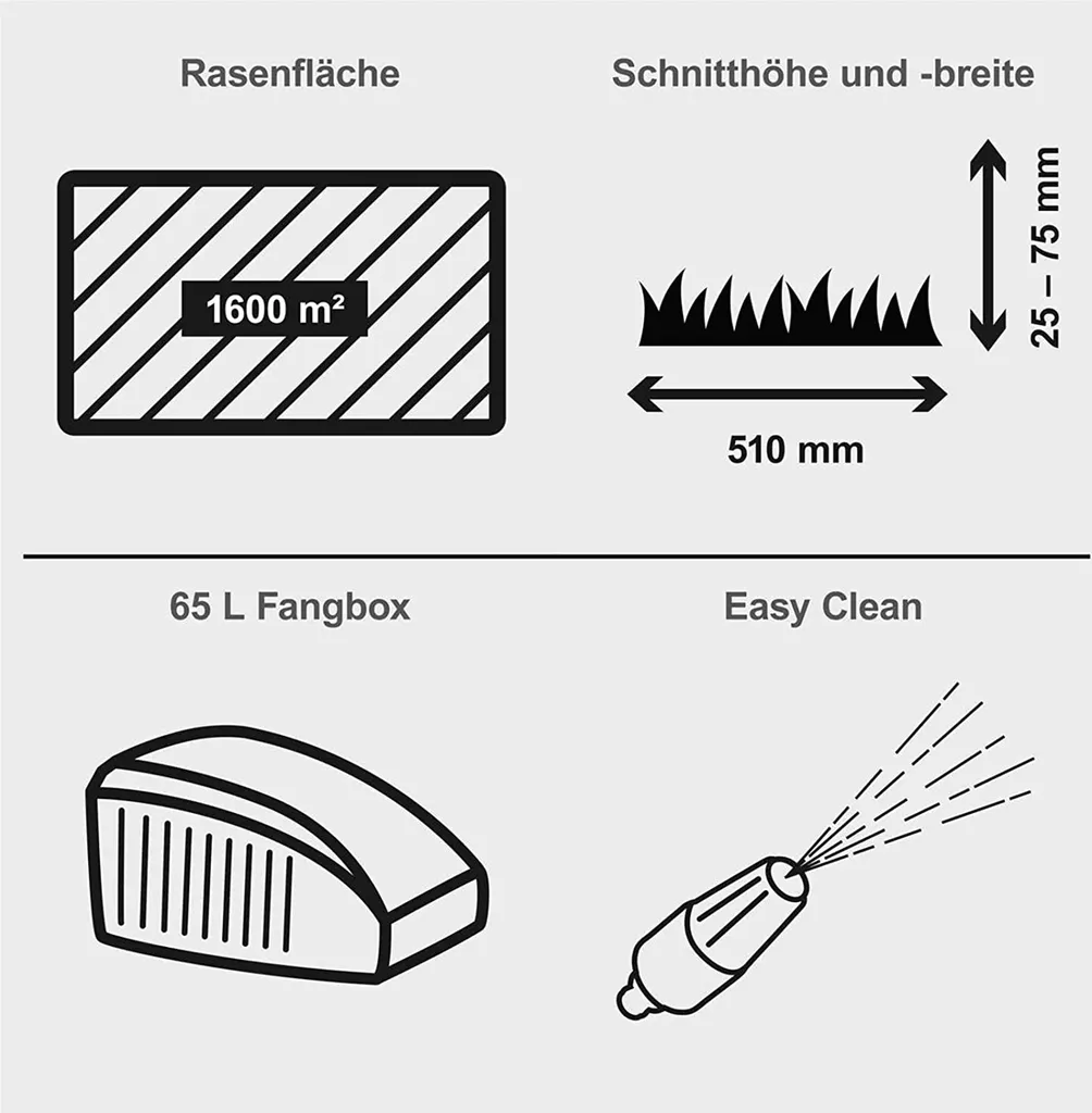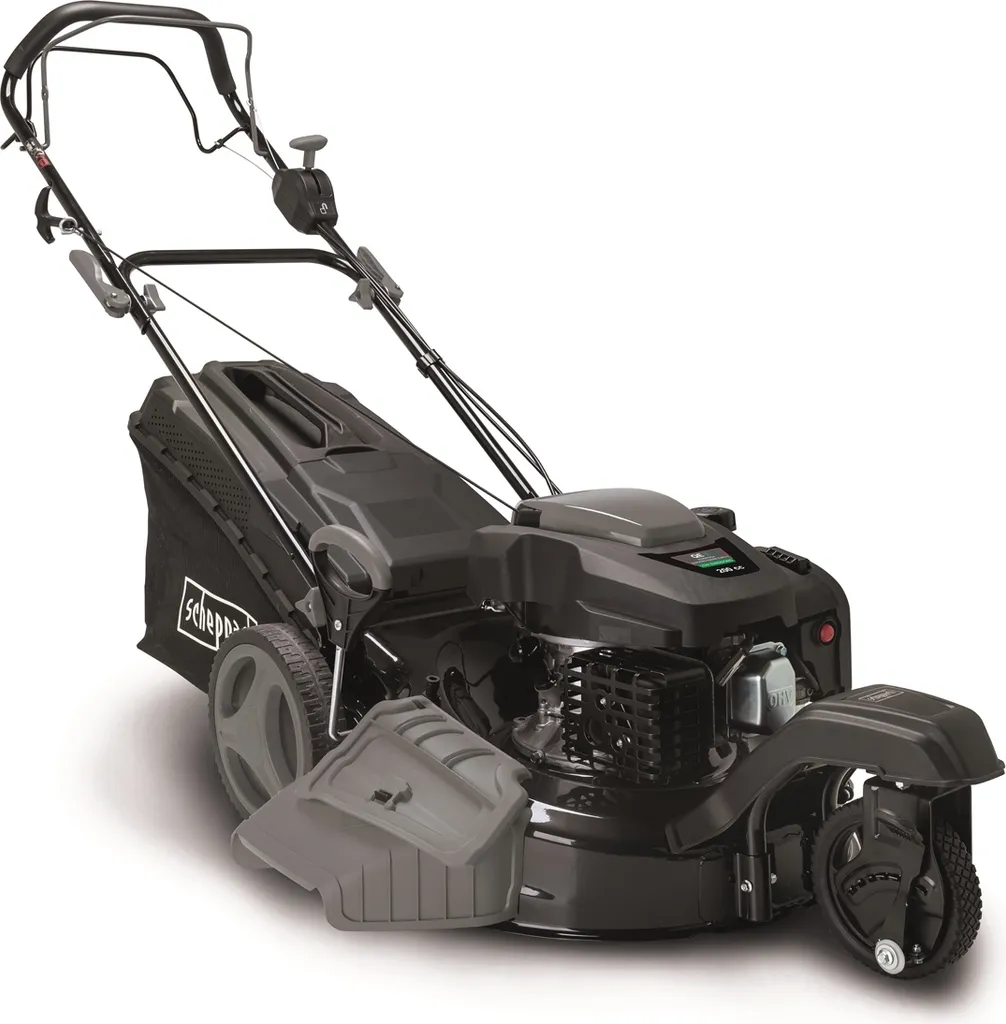 Scheppach MS197-51B Black Benzin Rasenmäher Trike Mit Radantrieb | 5,2PS | 4-Takt Motor 200ccm | 51cm Schnittbreite | 65L Fangkorb | Stahlgehäuse | 7-Fach Schnitthöhenverstellung 25-75mm
