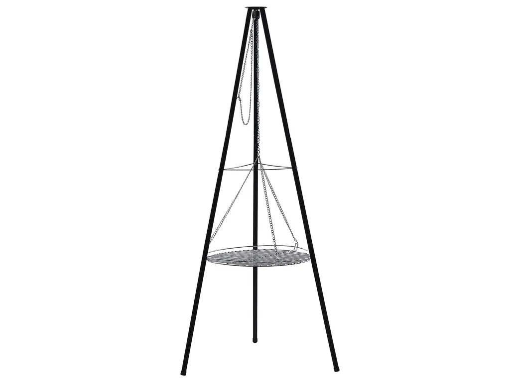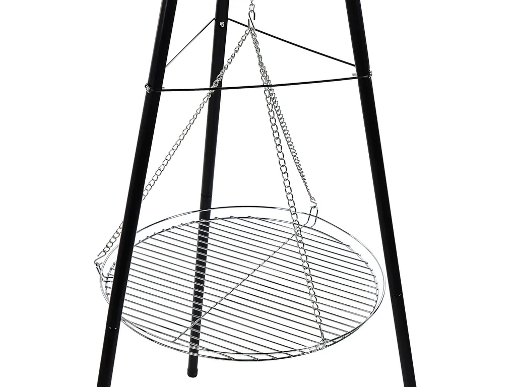 Schwenkgrill Schwarz Aus Stahl Dreibein Mit Grillrost Höhenverstellbar Holzkohlegrill Garten BBQ