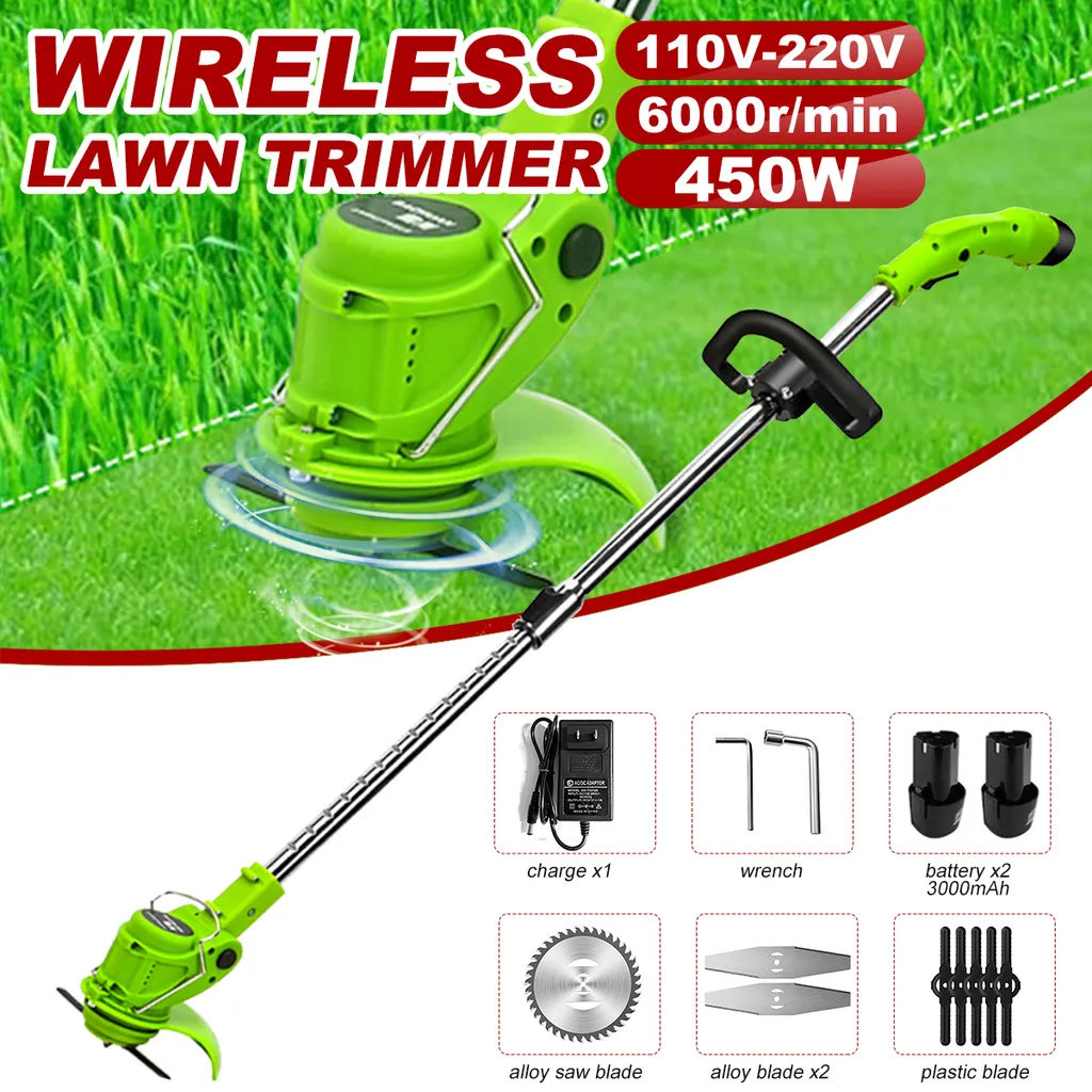 Scode Handrasenmäher Spindelmäher Elektronisch Kabelloss Haushalt Klein Mäher Wiederaufladbar (2 Batterie)