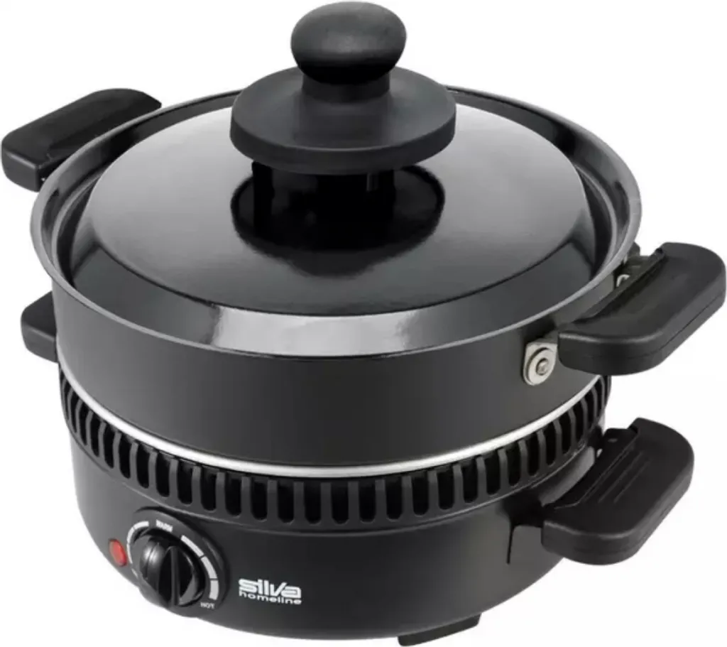 Silva PK-M 800 Multiröster – Maronibräter – Wendegussplatte – 600 Watt – Schwarz