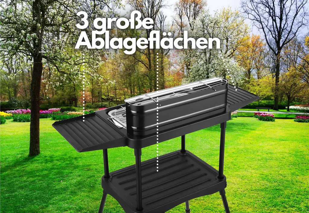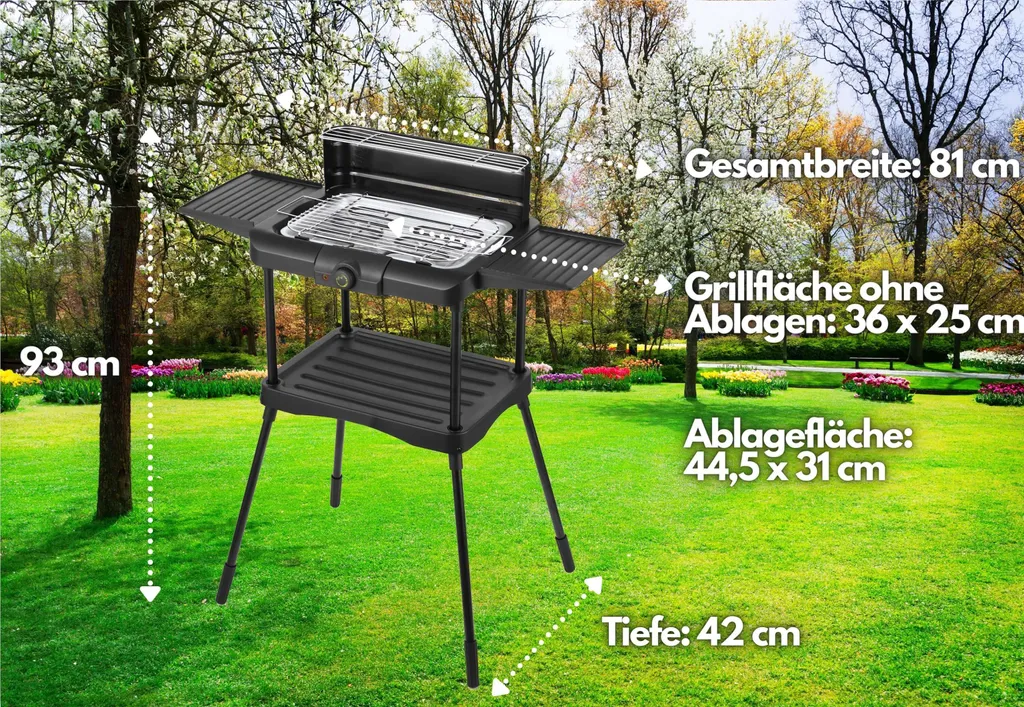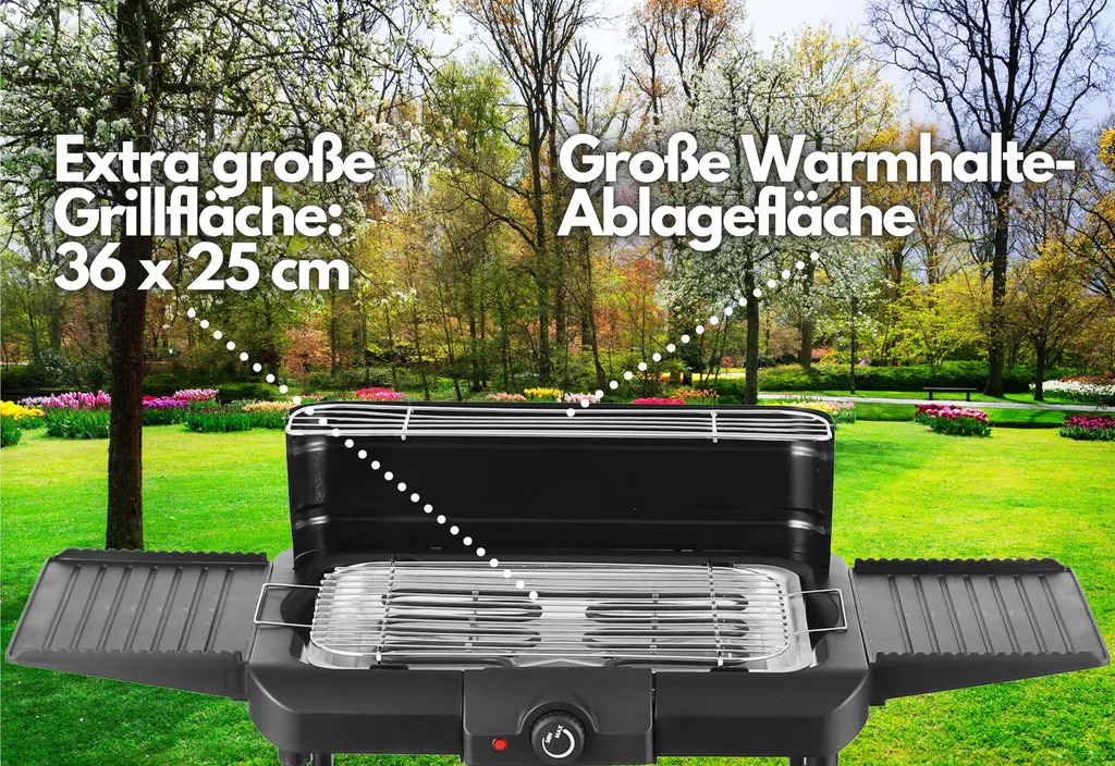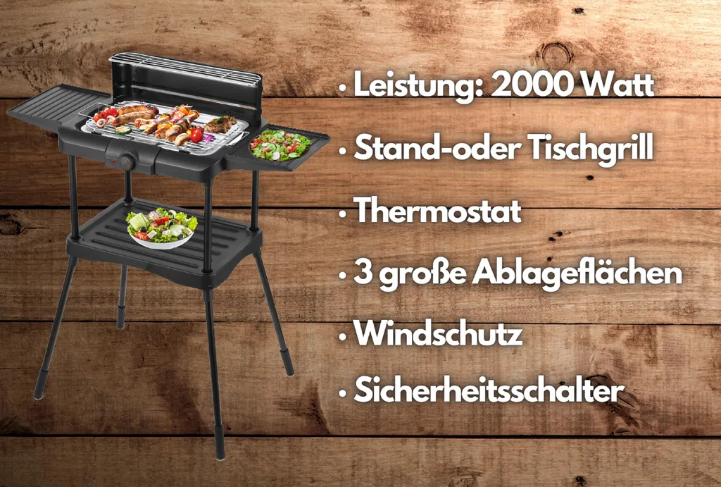 Steinborg 2in1 Standgrill | Elektrischer Grill | 2.000 Watt | Große Ablageflächen