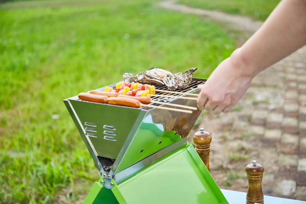 Steinborg Klappgrill | Laptopgrill | Campinggrill | Blitzschneller Aufbau | Hitzebeständiger Rahmen | Grün
